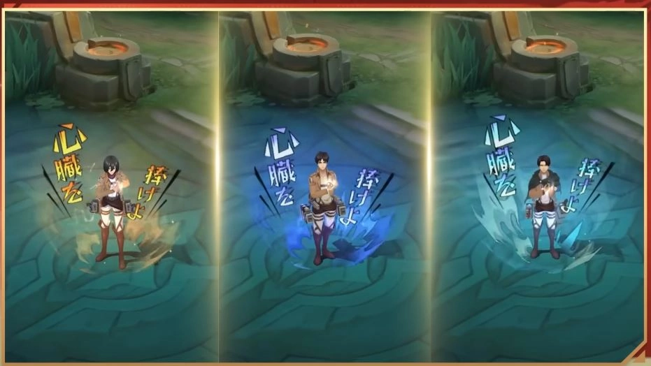 Персонажи Инь, Фанни и Мартин получат образы, посвящённые трём героям франшизы. Инь получит облик Эрена Йегера, с возможностью трансформироваться в Атакующего Титана, Фанни примерит на себя образ Микасы Аккерман, а Мартин воплотит в себе Леви Аккермана.