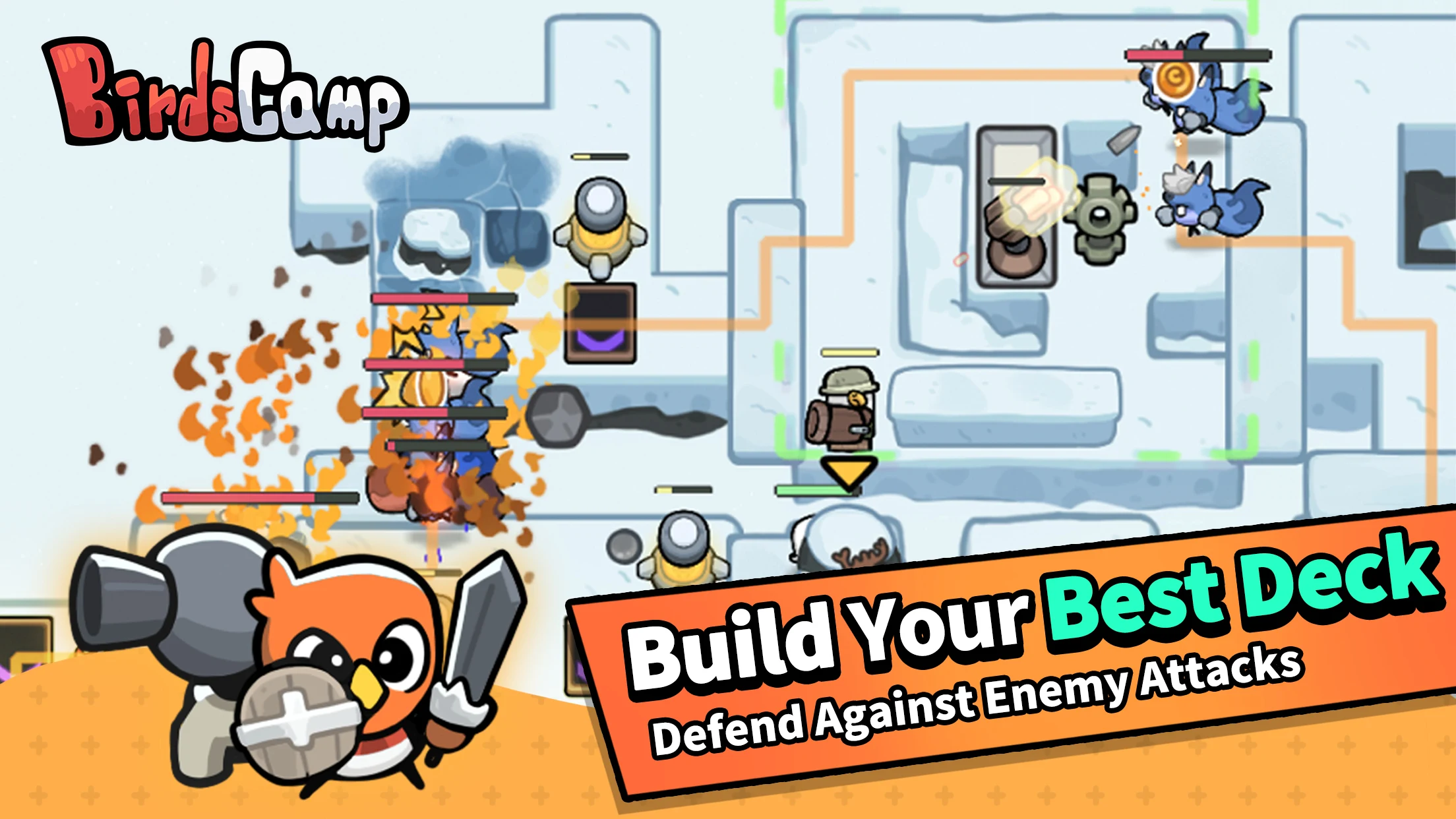 Студия ChillyRoom готовит к выпуску новую мобильную tower defense игру под названием Birds Camp. В ней игрокам предстоит возглавить отряды высокотехнологичных птиц, защищающих свои базы на острове Болдер (Boulder Island) от вторжения различных противников.