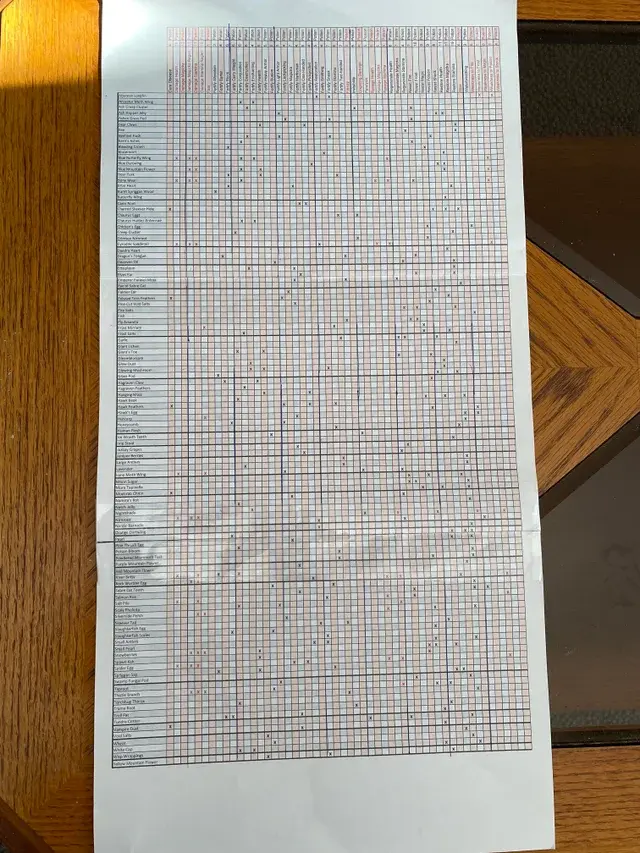 Занятие оказалось для женщины не совсем лёгким и, по словам автора, его маме понабился почти месяц что бы научиться элементарно передвигаться в игре. Но недавно она прислала ему таблицу. Исходя из которой становиться ясно, что мама увлеклась алхимией. Причём она подошла к этому занятию с большим энтузиазмом и, похоже, освоила его в совершенстве. Женщина составила внушительных размеров таблицу с разными видами зелий и необходимых ингредиентов для их создания.