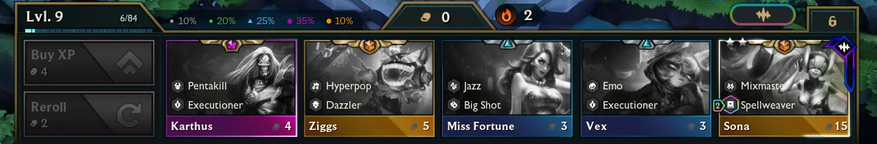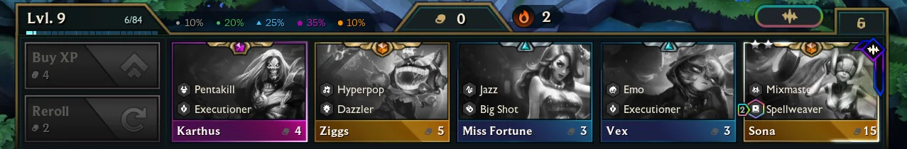 Говоря об увеличении количества персонажей и хэдлайнерах, стоит ещё упомянуть то, что вместе с этим переработали шансы появления в магазине самих героев. Как я писал в своем обзоре Teamfight Tactics, главная стратегия победы — это манипуляция рандомом. Необходимо следить за сборками врага, чтобы не собрать что-то идентичное и не проиграть из-за недобора. Для последнего ранее был введен специальный индикатор, показывающий шанс выпадения героя определённой редкости. Но в этом обновлении этих индикаторов вероятности стало два! И если первый, по-прежнему отвечает за самих героев, то второй нужен для шанса выпадения хэдлайнеров. Причём показатели выпадения у них абсолютно конченные!