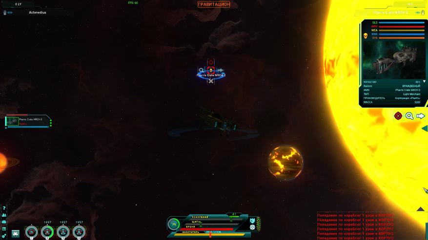 Сам корабль управляется довольно просто – включаешь двигатели, разгоняешься, либо включаешь режим турбо и летишь. А вот в бою дело обстоит сложнее. В первую очередь необходимо включить орудия и распределить энергию на разные части корабля: ускорение, щиты или орудия. Так же у корабля есть три основных параметра и один дополнительный, а именно: здоровье, щиты, ускорение и внешние щиты, которые не позволяют врагу дойти до щитов самого корабля. Внешние щиты необходимо устанавливать по одному из четырёх направлений, чтобы минимизировать урон для корабля. Далее необходимо подлететь к врагу, просканировать его корабль и войти в дальность атаки своих орудий. Орудия стреляют сами и наводятся на вражеский корабль тоже автоматически. Игроку же необходимо правильно распределять имеющиеся ресурсы и грамотно перемещать корабль в пространстве.