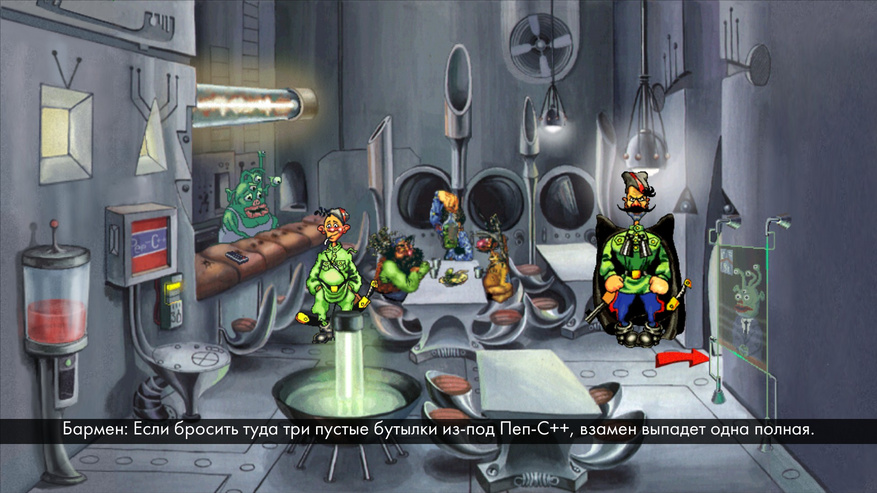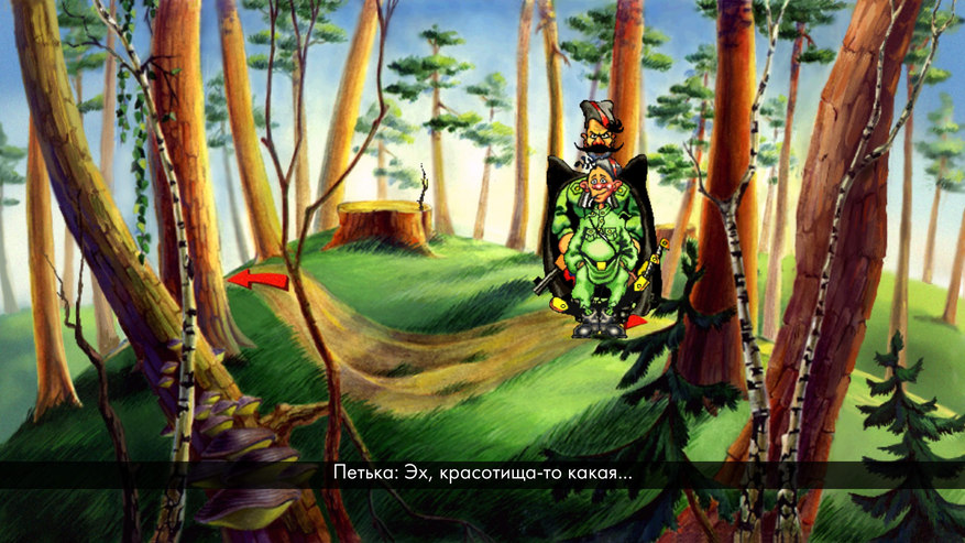 Например, чтобы запустить магнит, Чапаев должен будет взяться за провода, а Петька — дёргать за рубильник. А вот минусом идёт долгое передвижение по локациям, хотя временами героев удаётся поторопить прокликиванием. Локаций немного, но они разнообразны: от деревенской бани до корабля пришельцев. И вот тут надо сделать остановку.
