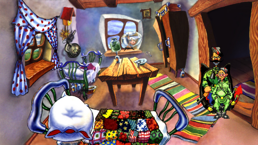 Основа таких игр заключается в пиксель-хантинге, или «охоте за пикселем». Приведу пример из самой игры: в доме у Петьки стоит аквариум, в нём лежит ключ. Ключ ничем не примечателен и на фоне других предметов не выделяется. Однако, использовав взаимодействие с аквариумом, игрок получит ключик. Так что получается, что игрок закликивает всё пространство на предмет реакций.