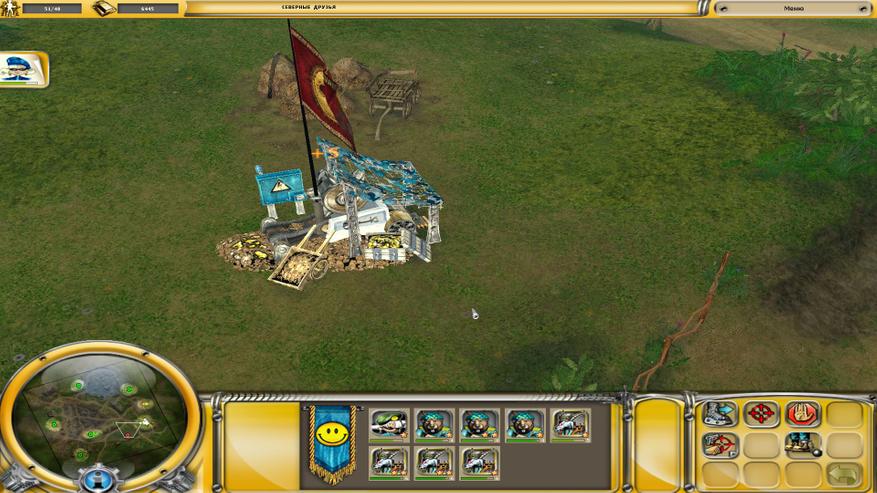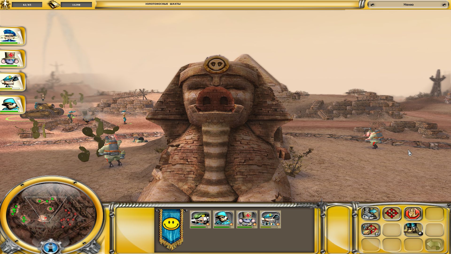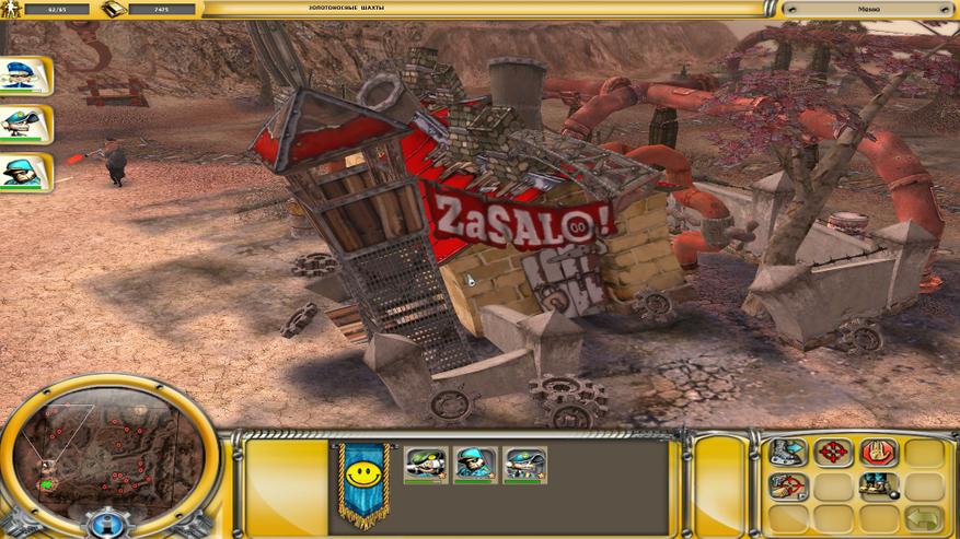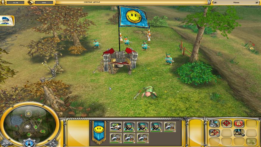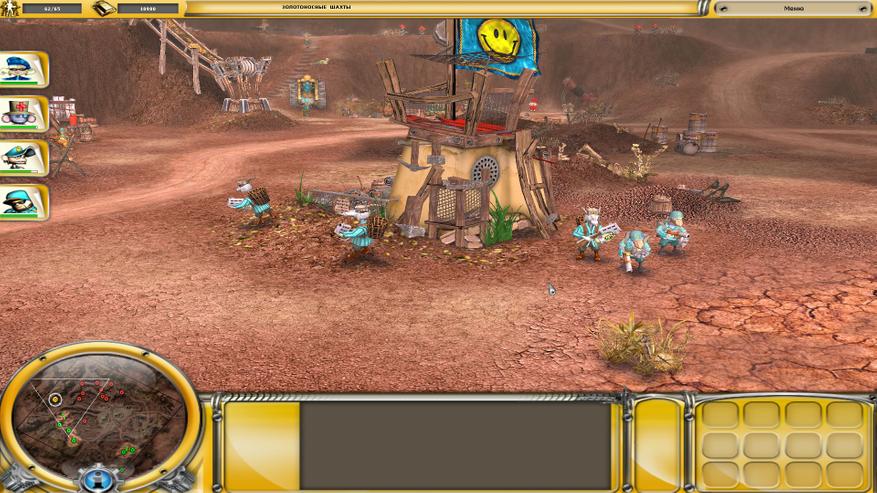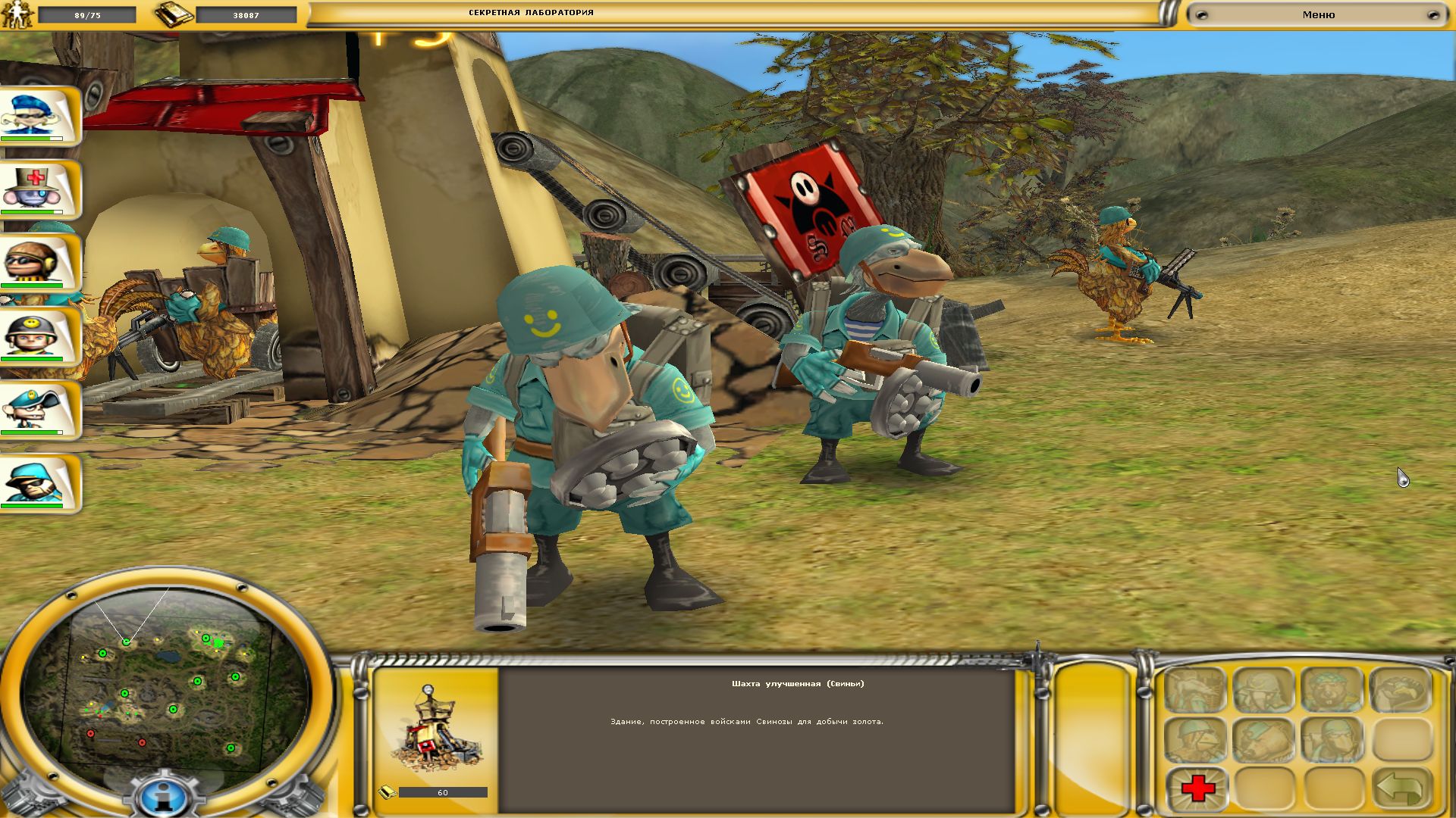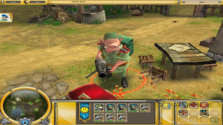 Несмотря на то, что вы будете ограничены в бойцах, враг не будет испытывать подобной нехватки. Бойцы-свиньи появляются на главной базе противника в бесконечном количестве до завершения миссии. Переломить ход сражения и облегчить прохождение миссий поможет контроль территории и находимые на миссии артефакты. Контроль осуществляется захватом золотодобывающих шахт, они будут давать вам деньги и возможность вылечить войска. Шахты делятся на малые, большие и быстрые. В зависимости от типа предприятия на них можно нанять охрану, и чем лучше шахта, тем больше по количеству и качеству охрану можно нанять, но полноценно рассчитывать на стражу не нужно, их мало и по силе они всегда уступают даже рядовой пехоте врага. Полученные деньги из шахт можно использовать для покупки охраны, пополнения пострадавших отрядов, только если отряд не был уничтожен полностью, а все остатки, добытые в миссии, переходят далее по кампании и используются для приобретения новых видов войск между миссиями. Помимо шахт интерес на карте представляют красные сундуки, видимые даже в тумане войны. Данные хранилища имеют охрану и могут быть открыты только героем и пока вблизи нет ни единого врага. При открытии сундука появляется деревянная кукла на пружинке и предлагает на выбор крупную сумму денег или артефакт, однако узнать свойства предлагаемого предмета, а также возможность его использовать, появятся лишь в меню подготовки между миссиями. Артефакты делятся на две основные группы: первая — улучшение войск, вторая — улучшение героев. Также предметы имеют три уровня качества: серебряный, золотой, золотой с драгоценными камнями, — чем выше уровень, тем выше даваемый бонус.