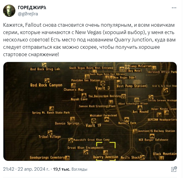 С момента выхода сериала прошло 3 недели и ажиотаж вокруг сериала всё ещё не угасает, что подтверждается онлайном в играх данной серии. И на фоне этого подъема, ветераны первых двух частей Fallout и спин-оффа решили провернуть масштабный флэшмоб по вводу в заблуждение новичков, которые решили пройти Fallout New Vegas.