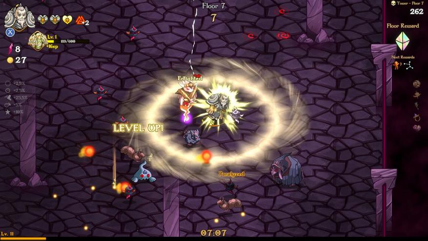 После завершения боя в комнате открывается доступ к нескольким путям. Каждый путь предлагает разные типы наград: увеличение здоровья, получение золота или оружия. Игрок может выбирать направление развития персонажа.