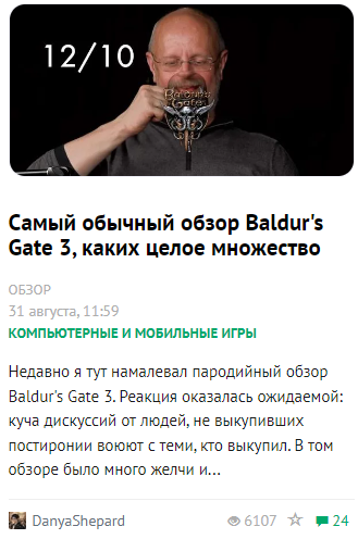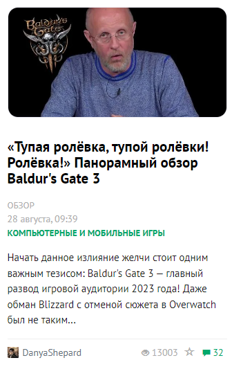 К чему я это. А к тому, что сейчас критика ушла в эмоции (Критика — розыск и сужденье о достоинствах и недостатках какого-либо труда, анализ, оценка о явлениях какой-либо области человеческой деятельности), а люди слишком подвержены эмоциям. В действительности стало еще труднее найти хороший анализ. Как пример, я никогда не говорю плохо о играх, если ее действительно не играл, я могу только сказать, что та или иная игра плохая по мнению некоторых людей. Тем более, что случалось, что даже низкооценненая игра затягивает и наоборот. Также, чтобы узнать понравиться-ли это игра я задаю очень много вопросов. Например в этом случае Элден Ринг очень сложная игра к совету, потому что в реальности, а не в интернете, я мало встречал любителей Соулс. В этом случае я сразу спрашиваю, как он относится к Дарк Соулс, как с Секиро (бывает именно, что вторая людям заходит, а первые нет). Т.е критика очень сложная тема, в критической статьи все эти темы должны быть учтены, а не просто кричать игра говно. Говно-ли игра Старфилд, нет конечно, много-ли в ней минусов, да хоть отбавляй, найдете-ли вы другую такую игру. Смотря, что ищите. Может вы хотите бои в космосе, а может вы хотите огромую вселенную. И к чему мы в итоге пришли. Верхний интернет зачитывает пресс-релизы, нижний, который ничем не отличается уже от верхнего, приводит приговор — кал или не кал. Причем даже искренние блогеры все равно не понимают, что такое критика, так как это искусство, обучающих в вузах.