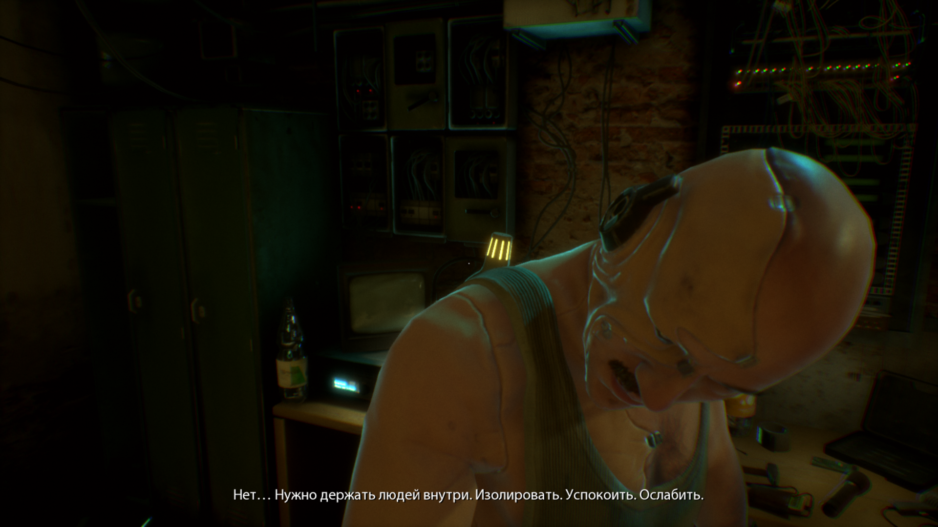 С точки зрения биологии, кибернетический имплант — это инородное тело в незажившей ране. С точки зрения психологии, технология — костыль для поддержки инвалида. Вы с головой погружаетесь в мир противоречий между врожденным несовершенством нашей плоти и теряющими без нее основной смысл идеи технологии. На игрока, привыкшего к ярким и романтично поданным ламповым историям Cyberpunk 2077 или Shadowrun (ваш покорный слуга), Observer однозначно производит впечатление. Впечатление настоящего гротескного киберпанка. Когда актуальная и понятная нам идея-предупреждение подается в чуждой извращенной обертке. Когда прогресс изображен как нечто отталкивающее. И когда аллюзия, несмотря на аккуратную подводку, читается очевидно и ясно. Больные и ограниченные обитатели мира Observer не получают ни удовольствия, ни выгоды от своих гаджетов, одно лишь страдание, но обходиться без них они уже не способны. И как-то по неволе в голову проникает истинно панковская мысль: «А так ли нам нужен новый айфон каждый год?» Самоубийственная форма человеческого бытия и его социального взаимодействия максимально уродливым, натужным, отчаянным голосом визжит вам прямо в лицо: «Нам нужны перемены! И начинать нужно ни с плоти, ни с технологий, а с того чем мы являемся на самом деле!»