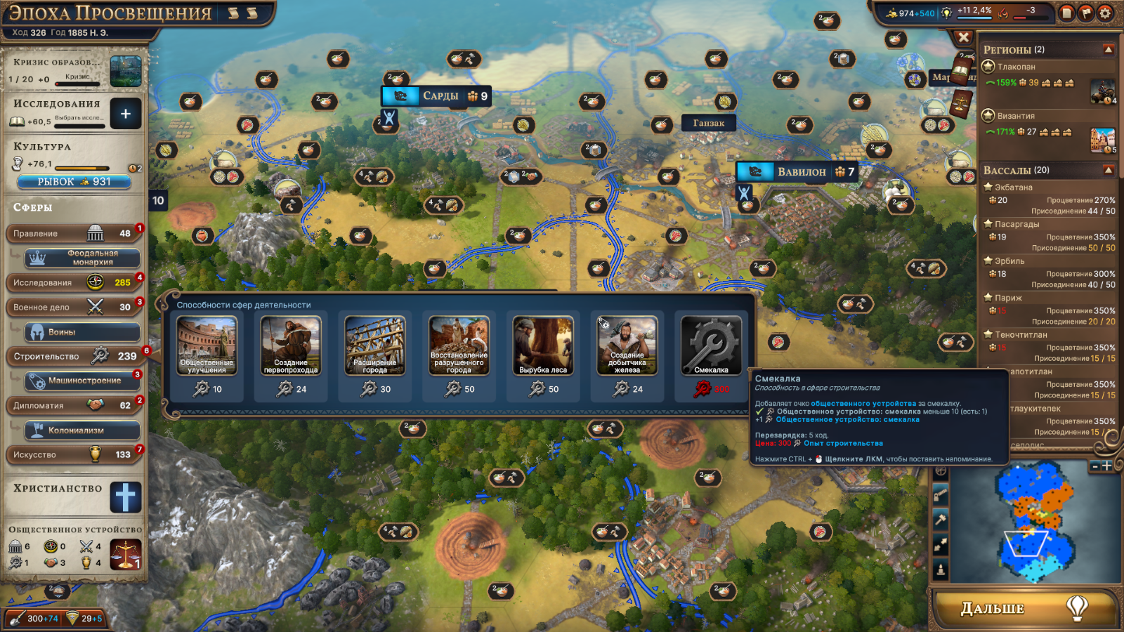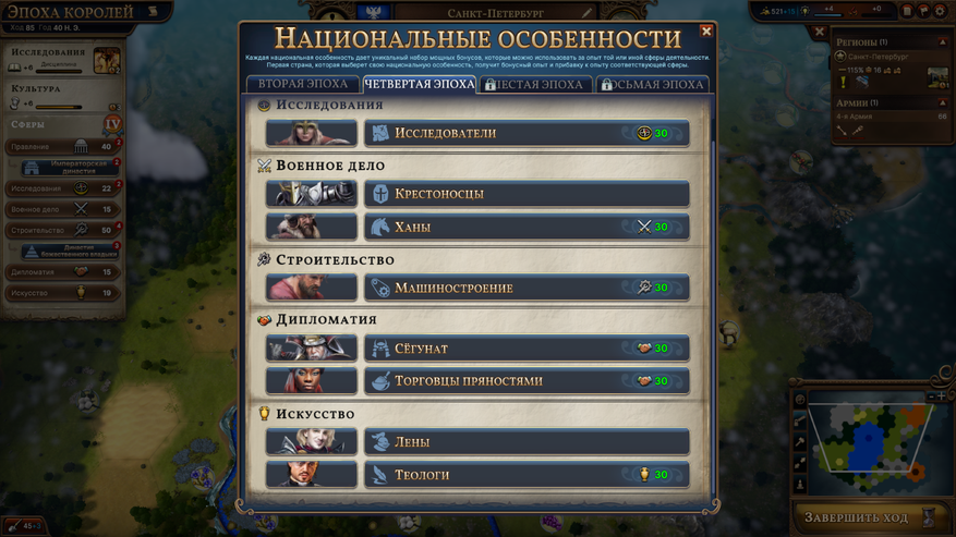 Эпохи альтернативной истории очень круты и в целом очень своеобразны. В каждой из них есть свои улучшения, здания и специальные механики, и они могут сильно повлиять на ход игры. Я еще не все из них видел, но почти все, которые я попробовал, очень крутые. С нетерпением жду, когда увижу те, о которых ещё не знаю, и что моддеры и DLC сделают с ними со временем.