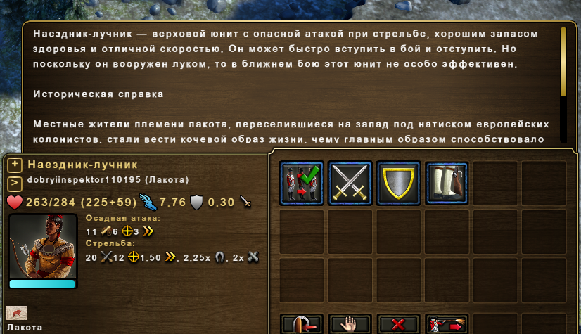Информация о силе атаке, защите, сильных сторонах юнита. Бонус против кавалерии. Очень полезные сведения.