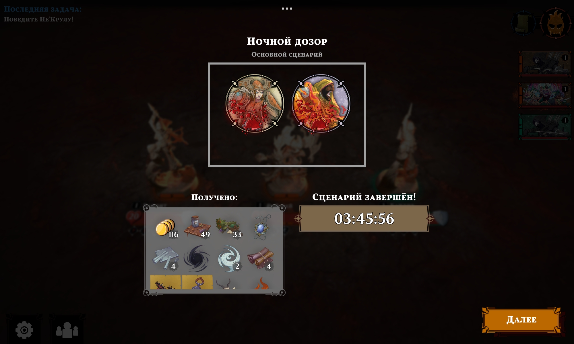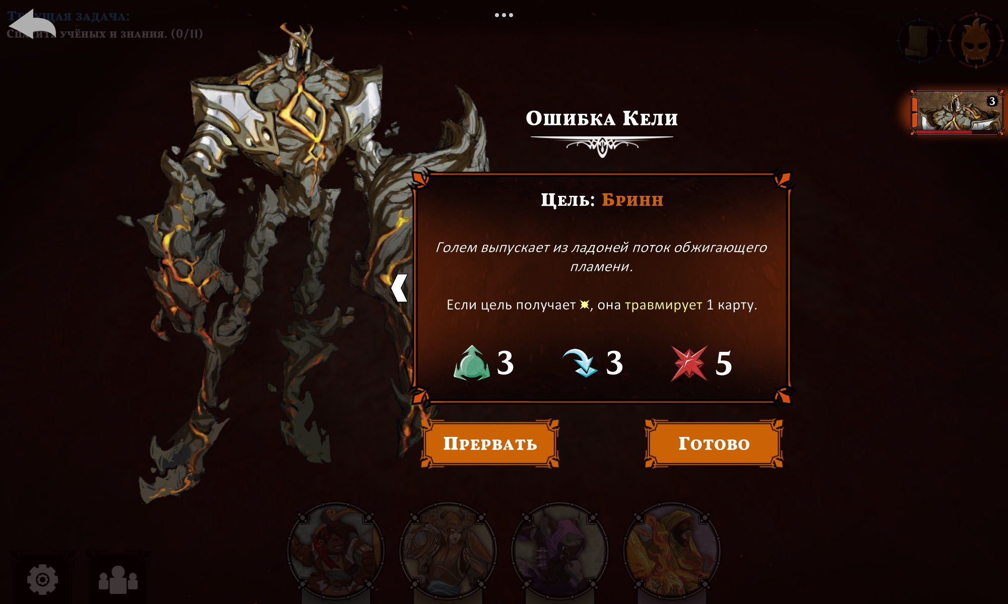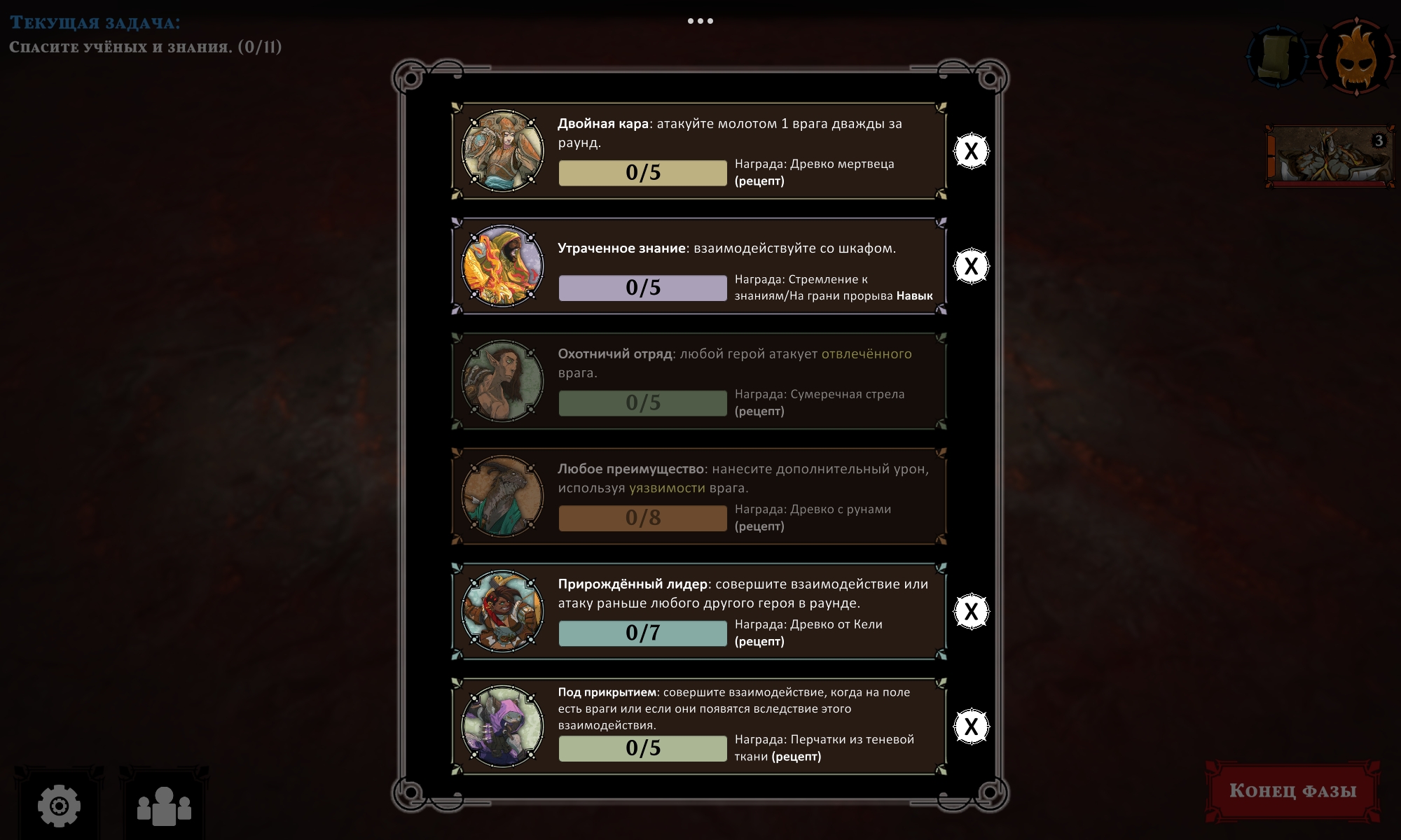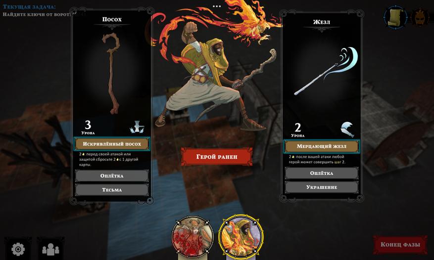 После того как все враги сходили, приложение, если требуется по сценарию, рассказывает о происходящих событиях, размещает новых противников на поле и обновляет задачи героев. Некоторые враги могут замышлять что-то хитрое или мощное, тогда выдается небольшая подсказка на этот счет. Затем снова наступает фаза героев.