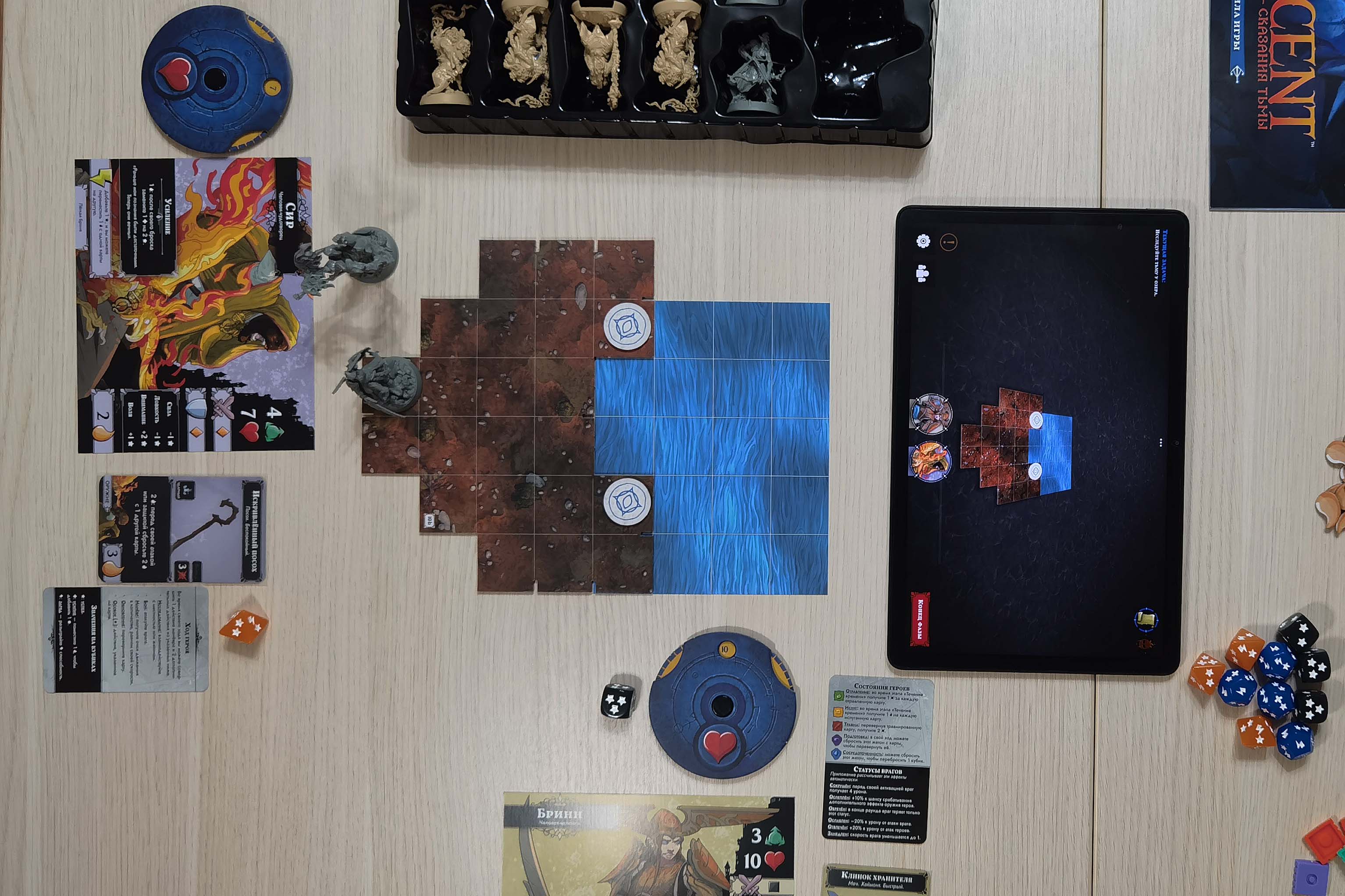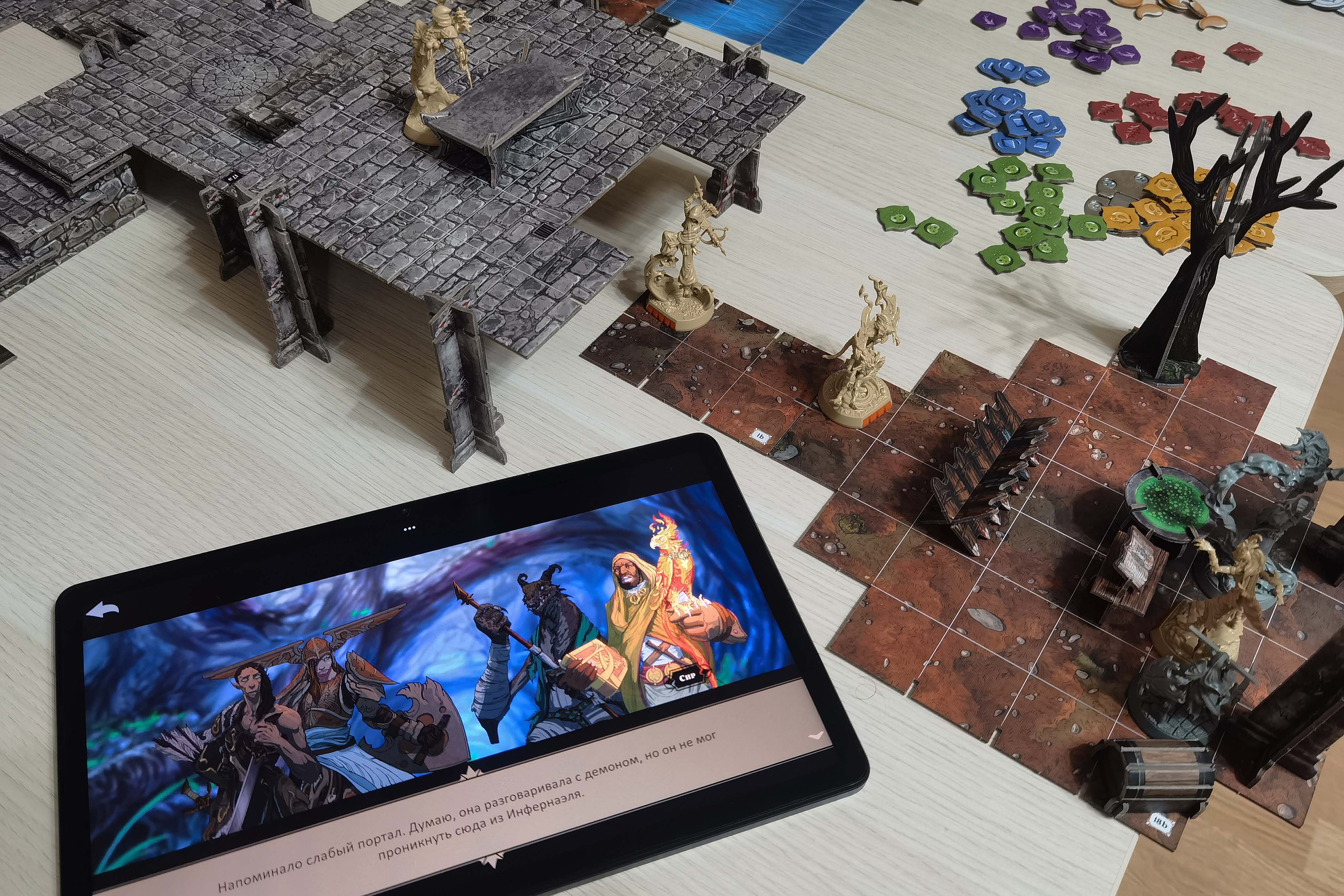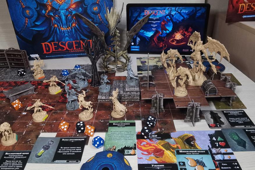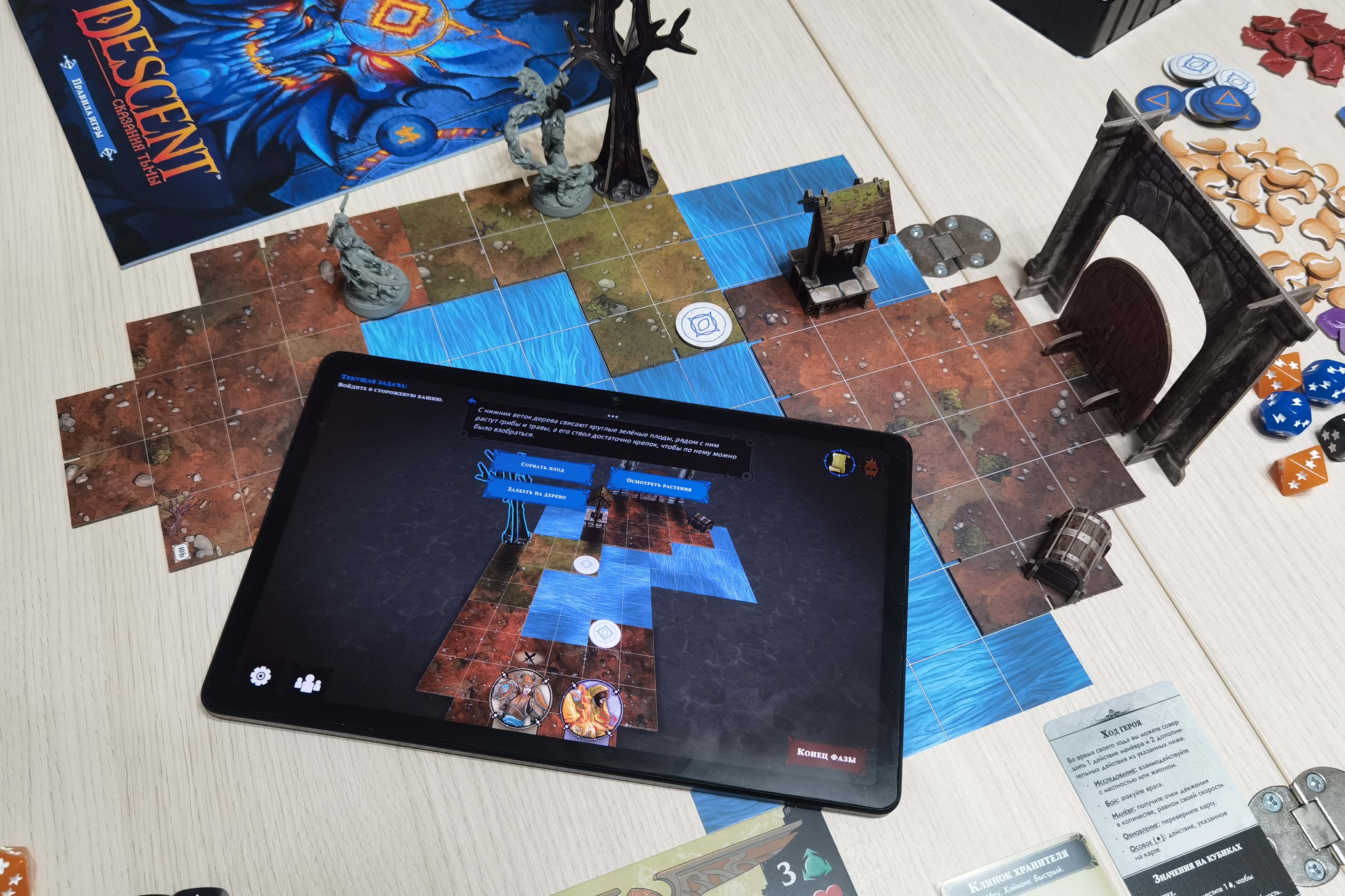 Первые две редакции настольной игры «Descent» действовали именно по описанному выше принципу, а вот ее новая интерпретация «Descent: Сказания тьмы» (разработчики называют ее не третьей редакцией, а перезапуском) сумела предложить весьма изящную альтернативу — поручить всю рутину с подсчетами мобильному приложению, значительно снизив порог вхождения и дав участникам сосредоточиться на более интересных аспектах. Попробовав настолку на одной из игротек Hobby World, я в нее буквально влюбился, и теперь уже более месяца прохожу масштабную компанию вместе с друзьями.