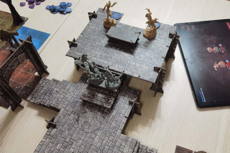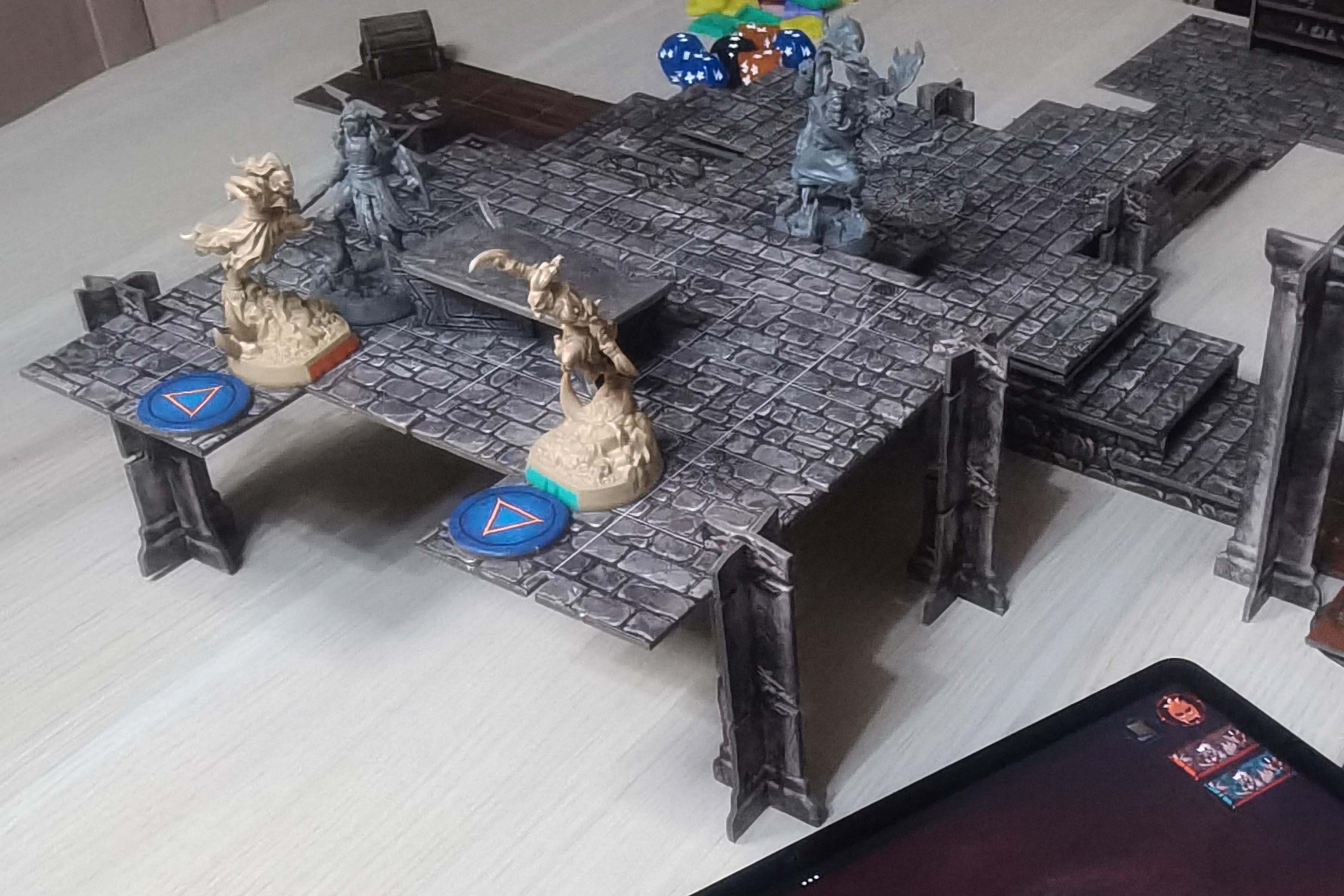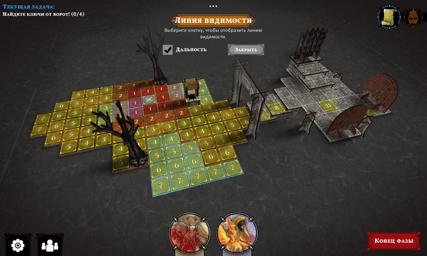 Геймплей пошаговый, а каждый раунд разбит на фазу героев и фазу тьмы, в ходе которой враги пытаются помешать героям достичь целей. Игроки сами договариваются, в какой последовательности будут ходить. У каждого персонажа есть один маневр и еще два действия из следующего списка: бой, маневр, исследование, обновление и особое. Боевое действие подразумевает ближнюю или дистанционную атаку. Во втором случае важно правильно определить расстояние и наличие линии видимости, что с учетом трехмерности карты и большого количества элементов окружения не всегда является простой задачей. К счастью, и здесь на помощь приходит приложение.