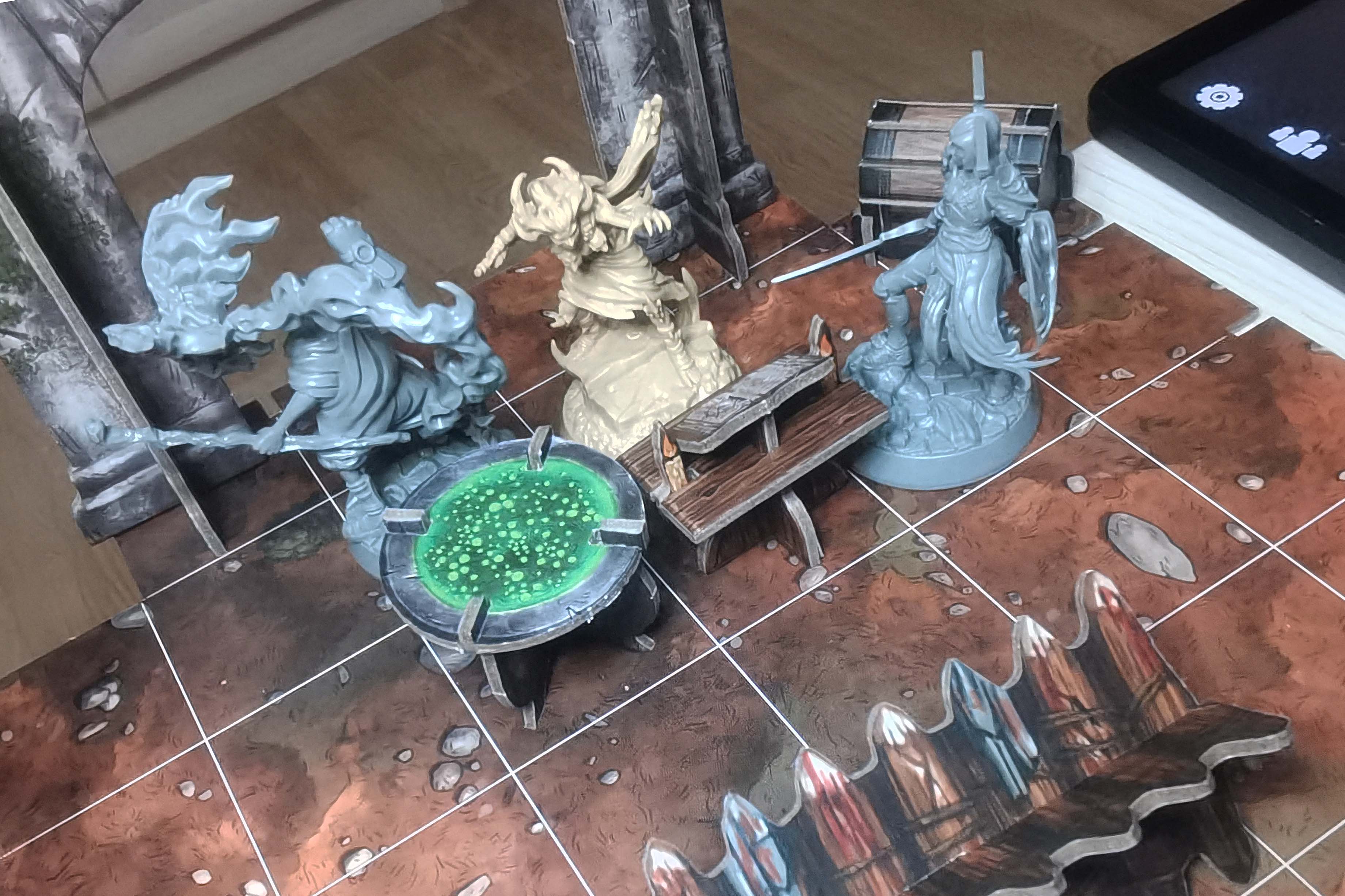 У игры минимальный для такого жанра порог вхождения: освоить большинство правил можно, даже не читая мануал — приложение не только выводит различные подсказки, но и содержит подробный справочник. Электронная составляющая значительно облегчает жизнь: автоматизирует все подсчеты, позволяет удобно взаимодействовать с окружением, показывает линии видимости, автоматически применяет различные эффекты, активирует способности врагов и ведет учет их хитов. При этом приложение гармонично сосуществует со столом, на котором формируется красивые и просторные трехмерные локации, наполненные большим количеством декораций и миниатюр. Кроме того, игроки вручную бросают дайсы и активируют предметы. Все это положительно сказывается на погружении.