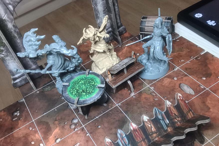 Чтобы полностью не превращаться в видеоигру, приложение намеренно не отображает положение миниатюр — все перемещения происходят только на столе. В любой момент движение можно прервать другим действием, а потом использовать остаток. Однако если подойти к противнику вплотную, то все оставшиеся очки сгорят. Отойти от врага на одну клетку можно лишь потратив действие маневра целиком.
