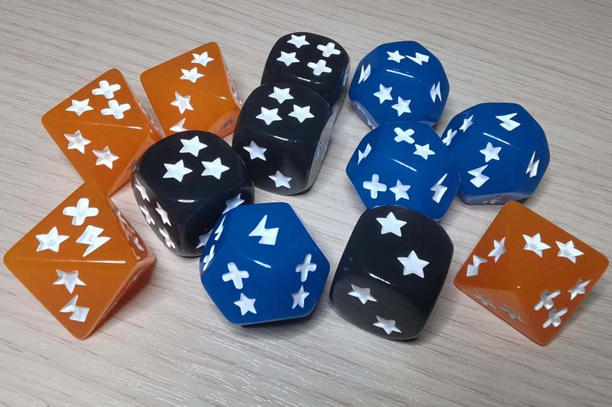 - 12 дайсов (6-, 8- и 12-гранные) с особыми символами;
