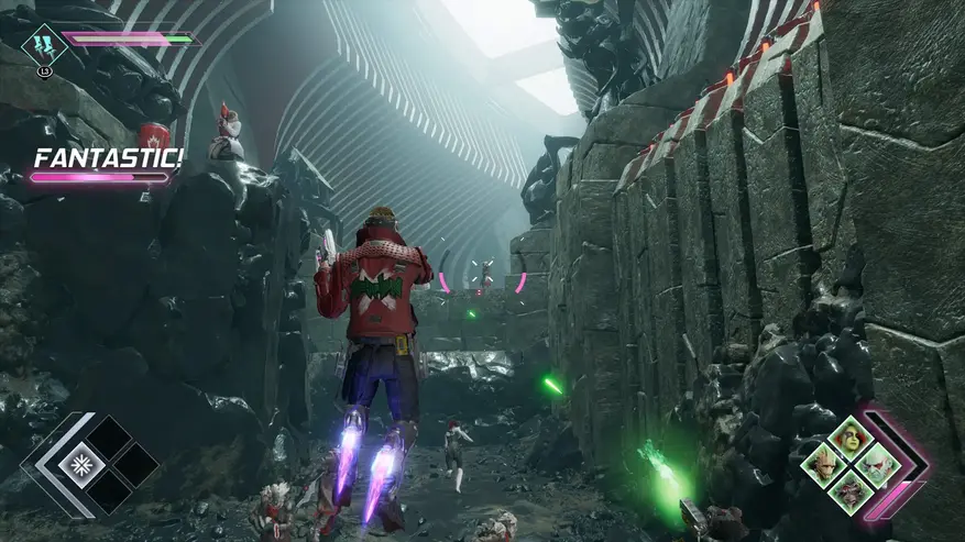 То же самое можно сказать и про постановку кат-сцен. В совокупности с качественным сюжетом и сценарием, порой создается ощущение, будто смотришь фильм Тайко Вайтити, словно пришел в кинотеатр на очередную часть «Стражей Галактики». Да, здешние персонажи визуально отличаются от тех, что изображены в фильме, они в большей степени приближены к героям со страниц оригинальных комиксов. Однако их характеры и особенности остались на месте.