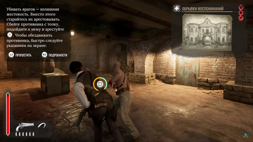 Казалось бы, все сделано хорошо, неужели разработчики так круто все продумали? Нет, они опять облажались с боевой частью. В «The Sinking City» сити она была скучной, но даже там вписывалась в игру. Тут сражения выглядят смешно и глупо, выходим на арену и стреляем во врага в замедленном режиме по уязвимым местам, например шляпа или патронташ, оглушив, подбегаем и добиваем одной из бестолковых и повторяющихся анимацией. Иногда нужно отстрелить пластины брони и только потом откроется уязвимое место. Противники выбегают по одному или два из разных дверей, и спустя несколько минут набегов мы победили. Добивание, это по сути арест, но можно и убить, хотя констебль в полиции не рекомендует этого делать, только вот последствий от нескольких убийств я не заметил.