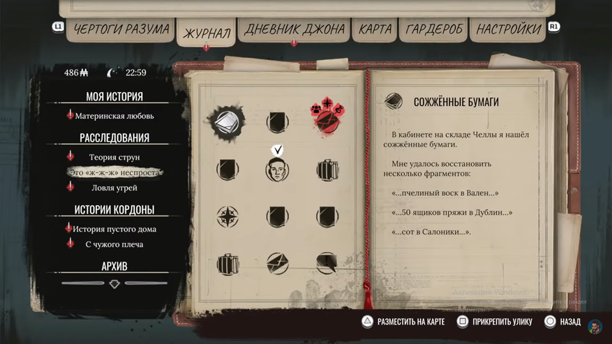 Как всегда, в арсенале у детектива есть: архивы в полиции, ратуше, газете, а так же чертоги разума и наблюдательность. Благо посещать эти места нужно не так часто как в той же «The Sinking City», в которой каждое преступление это обязательная пробежка по архивам. Все расследования будут проходить по старой схеме из выше упомянутой игры. Собираем улики и смотрим на значки рядом с ними в журнале, они подскажут, как действовать. Расспросить местных жителей или покопаться в архивах, иногда нужно будет делать химический анализ веществ, допрашивать подозреваемых и самое главное восстанавливать цепочки событий, в последнем действии, Шерлок будет медитировать, а Джон расставлять порядок действий. После сбора всей информации ловим преступника или нескольких и доказываем им, что это именно они совершили злодеяние.