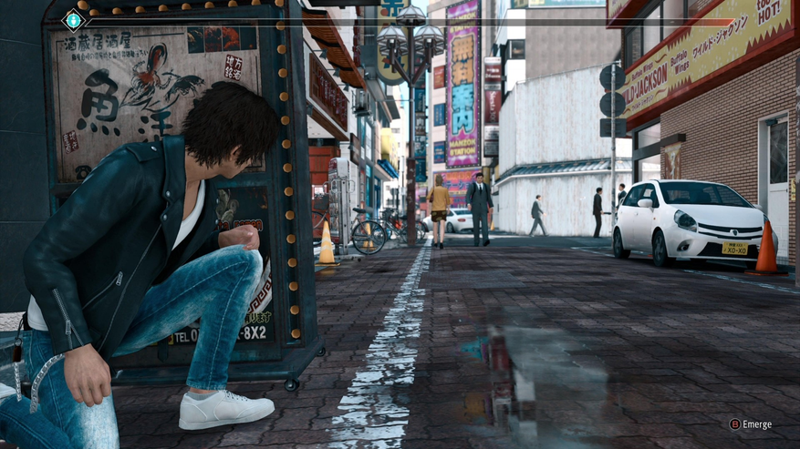 А помните миссии с преследованием в играх эпохи так Xbox 360 и PlayStation 3? Почему-то японцы решили, что игроки требуют свиней — простите, вернуть подобную механику в современную игру. Наша «жертва» постоянно будет останавливаться и оглядываться, хотя зачастую на это нет никаких причин — бред, да и только. Ягами приходится постоянно держать цель в пределах видимости и прятаться, иначе либо таймер и тревожная музыка начнут давить на нервы, либо шкала обнаружения станет заполняться.