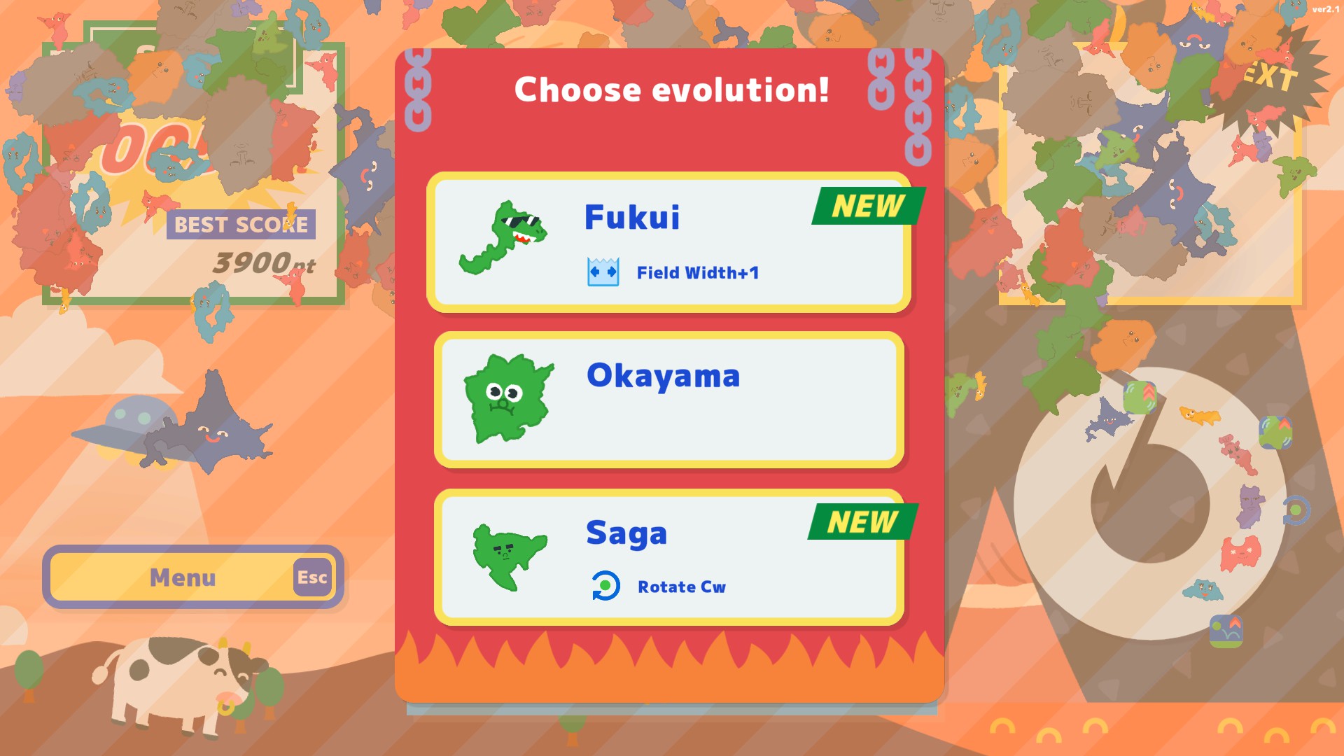 В новом режиме добавлены все 47 префектур Японии. Раньше в игре было представлено только 11 по количеству необходимых для заполнения круга эволюции. Но это, конечно, не самое главное в обновлении. Самое главное, что теперь игрок может самостоятельно выбирать эволюцию фигур.
