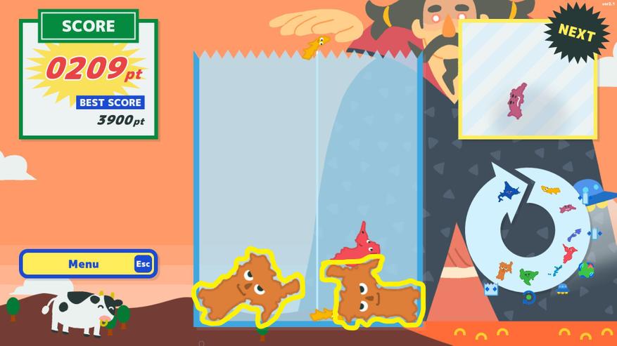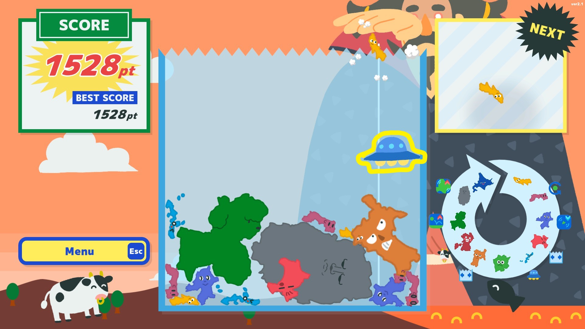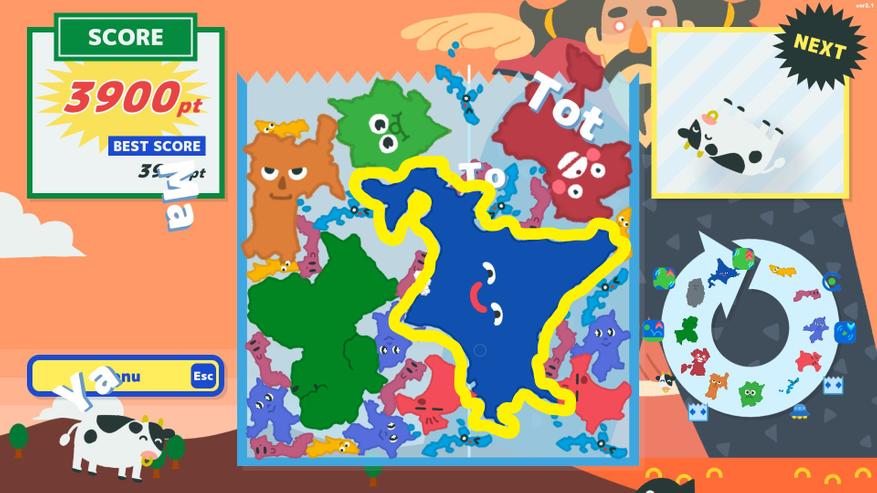 Напомню, что в игре необходимо бросать фигуры в форме японских префектур в коробку. И если две одинаковые фигуры соприкасаются, то они превращаются в одну новую префектуру, которая следует за исходными в круге эволюции. Самая последняя фигура в очереди — это Хоккайдо.