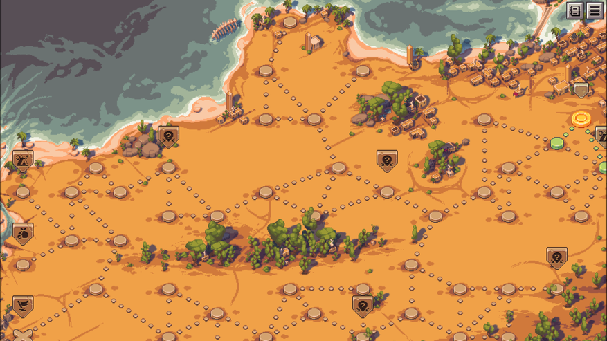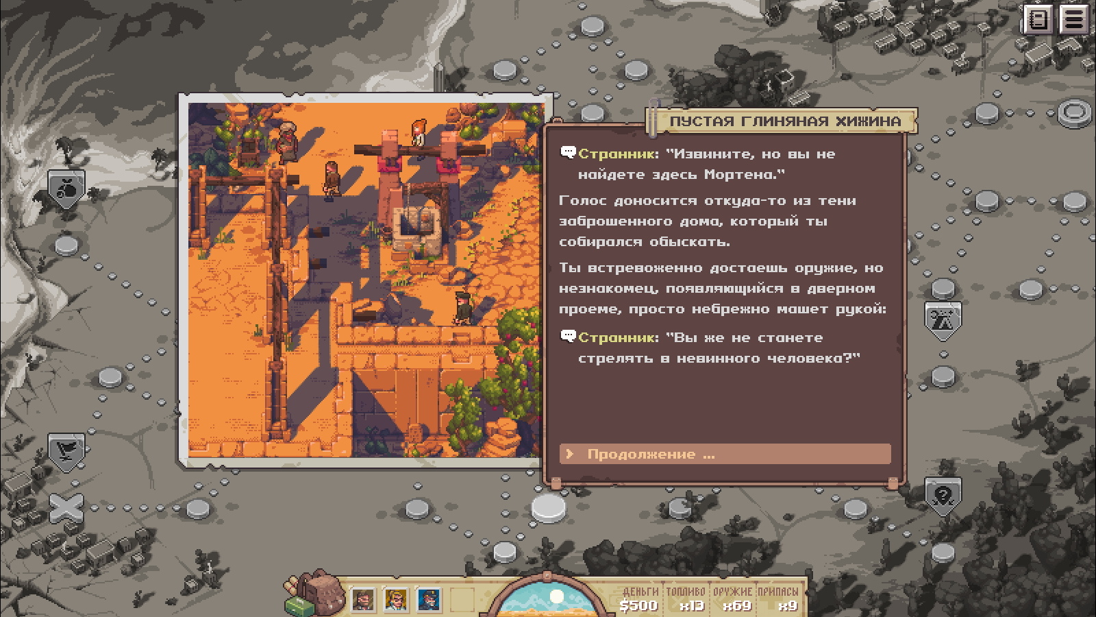 После выбора подходящих кандидатов-спасателей, сажаем всех в джип и двигаем в самое пекло — на край Западной Сахары, недалеко от города Марокко. Игроку становится доступна большая карта, разделенная на точки интересов, между которыми можно передвигаться на армейском внедорожнике. Хочу отметить, что несмотря на одинаковое расположение этих точек, с каждой новой игрой на них будут различные события. Так что реиграбельность в Pathway вам обеспечена.