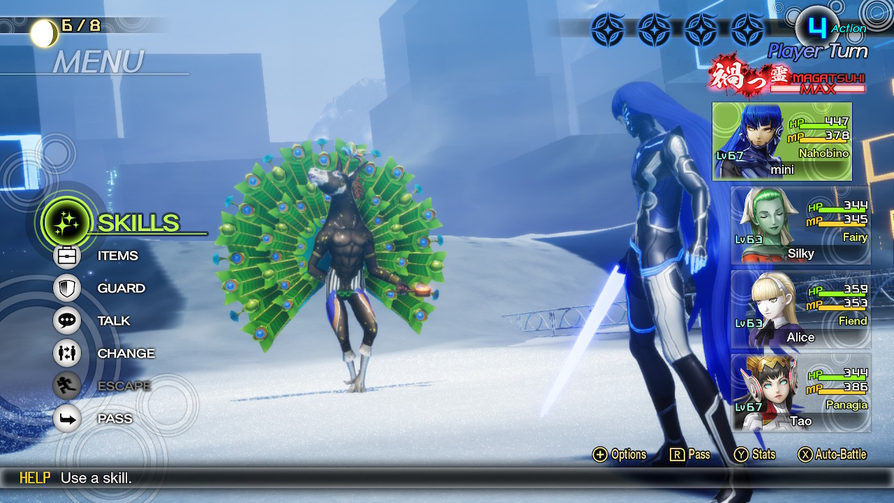 Это специальная атака, которая накапливается во время боя. У каждого в вашей банде она своя, но часто повторяется: любая атака будет критической; больше опыта и денег; уменьшается расход маны и др. Эффект длится один раунд. Кстати, враг тоже может зарядить Magatsuhi и лучше избежать этого — удар выкосит всю банду. В помощь идут чары (усыпить врага), временное сопротивление к элементу атаки (огонь, молния), банальная защита. Предугадать вражеский ход возможно, но бывают исключения.