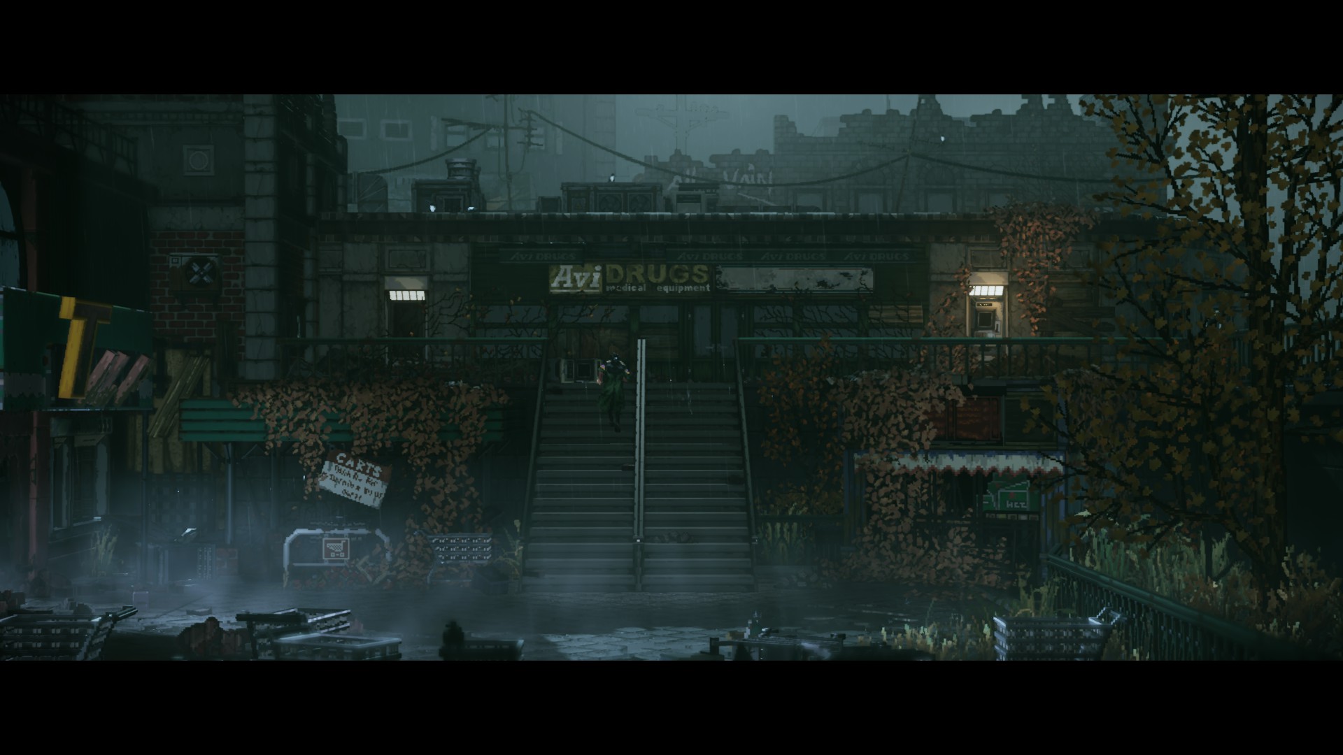 При этом, окромя боевой системы и действительно дорогой пиксельной картинки, игра в рамках демоверсии не показала чего-то необычного. Мы осваиваем довольно примитивный платформер, перепрыгивая со штанги на штангу, прячемся за тележкой от прожекторов, бегаем по 2,5D уровням, собирая записки. Боевая система, пускай сначала и заставляет ахнуть от удовольствия, может наскучить через несколько часов — в отличие от Batman: Arkham в нашем распоряжении нет гаджетов и вариативности ведения боя.