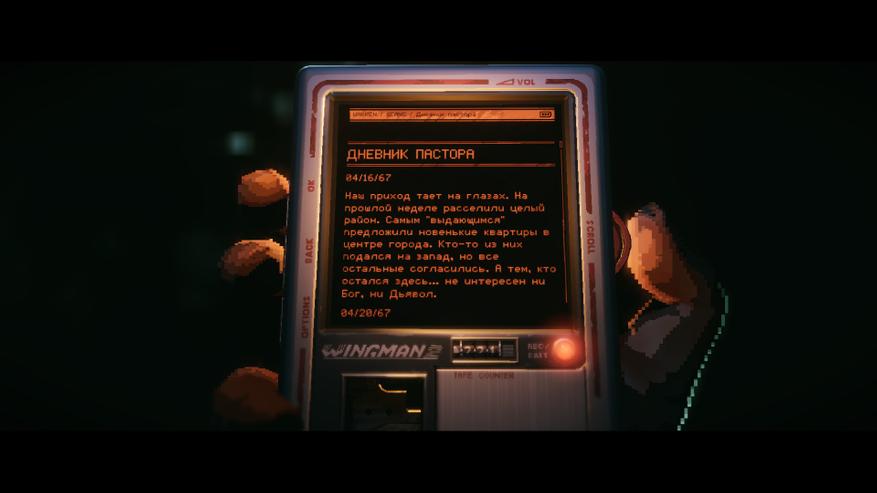 При этом игра сразу же дает неприкрытый намек на то, как именно будет выстраиваться повествование в будущем. На локациях разбросаны записки, раскрывающие мрачный лор альтернативной Америки 1980-х годов. Написаны они хорошо и интересно, правда, назвать их фактурными и важными получается с натяжкой. В остальном история не прерывается на кат-сцены и излишние диалоги.