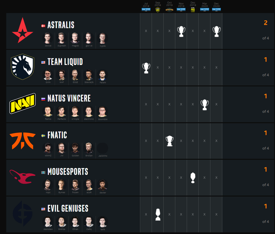 Перед стартом Катовице больше всего шансов на победу в серии у датской команды «Astralis». В их активе 2 трофея и для победы им необходимо выиграть ещё 2 турнира из последующих 6. Помимо датчан в гонке за миллионом долларов уже принимают участие mousesports, Fnatic, Evil Geniuses, Team Liquid и Natus Vincere. У каждого из этой пятёрки по одному трофею, а первыми в очереди на выбывание из данного списка стоят «Жидкие Кони», которые завоевали первый трофей в текущем сезоне (IEM Chicago в июле 2019 года).