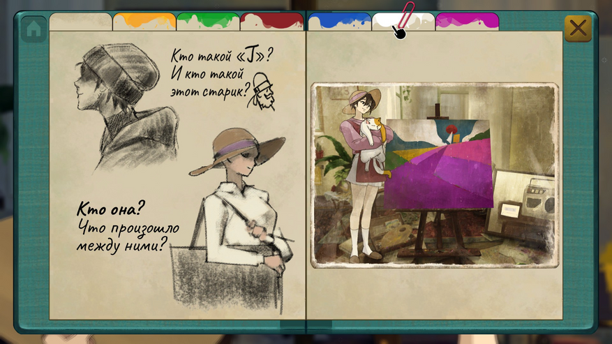 Хотя немало внимания и уделяется написанию картин, эта механика выполнена топорно. Игрок не может совершить ошибку: любые ошибки отменяются, тем самым ведя игрока под руку. Единственными моментами, которые могут доставить проблемы, станут поиск нужных предметов и решение не особо сложных, но всё же неплохих головоломок. По сути, игра в большей степени медитативная, но толику удовольствия получить всё же удаётся, а помогают в этом два последующих пункта.