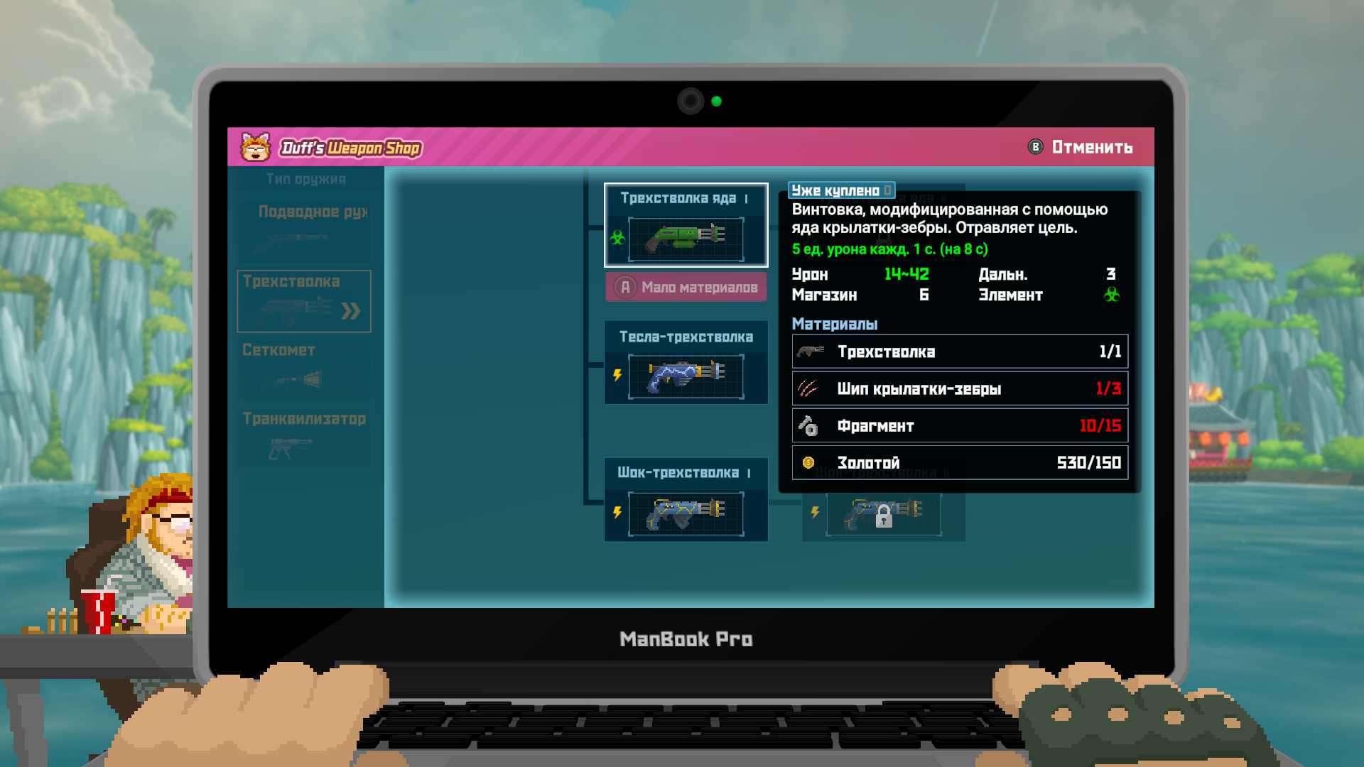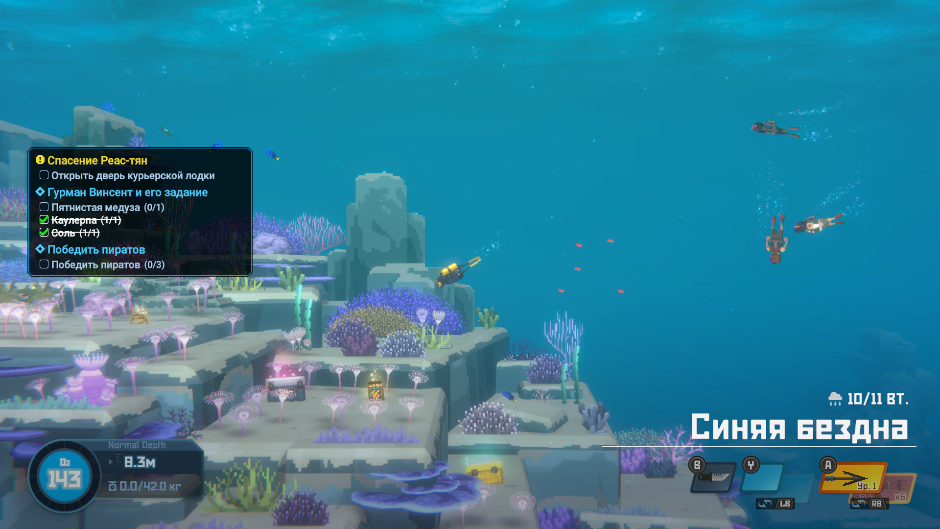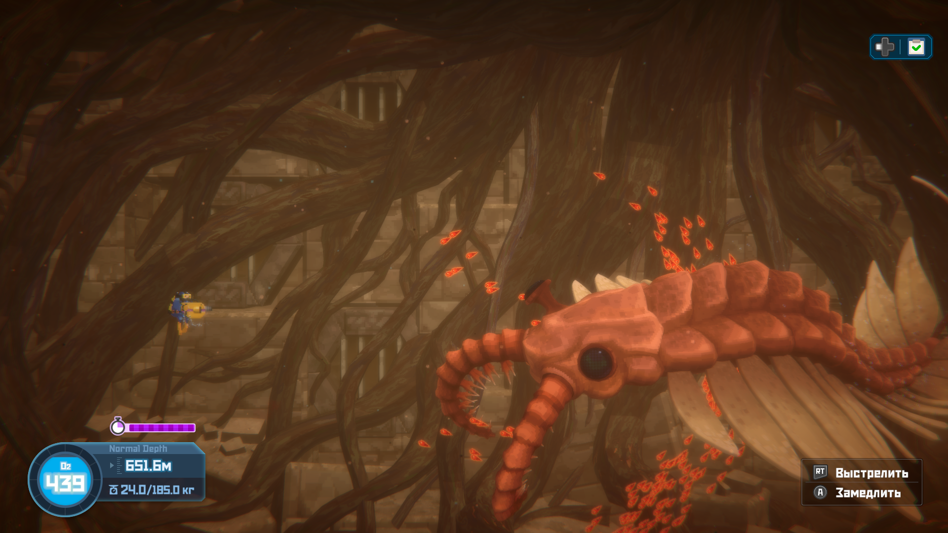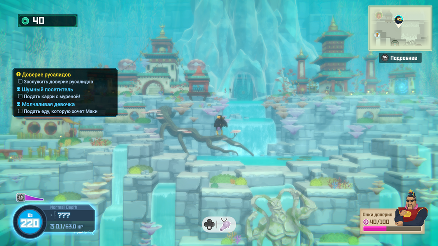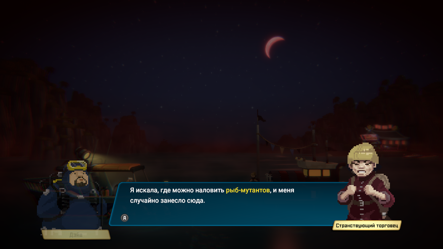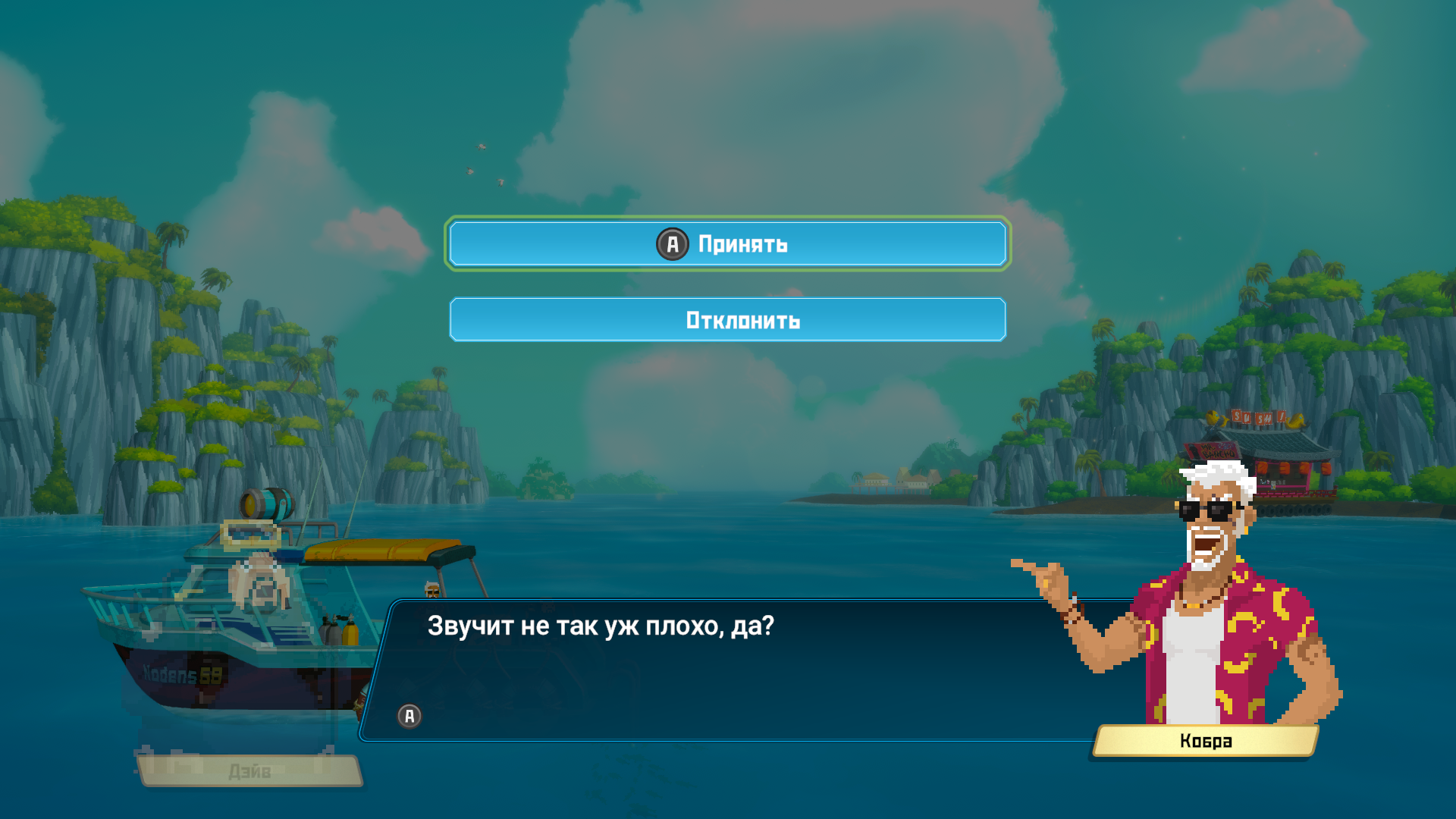 Редко когда говорю про этот пункт, но в случае с Дэйвом этот момент важен. Изначально игру пробовал проходить на клавиатуре, и не то чтобы это прям боль, но неудобства были. Спустя пару часов игры перешёл на геймпад. Тем, кто не привык пользоваться этим агрегатом, рекомендую сразу отключить вибрацию, т. к. может сильно мешать при поимке рыб.