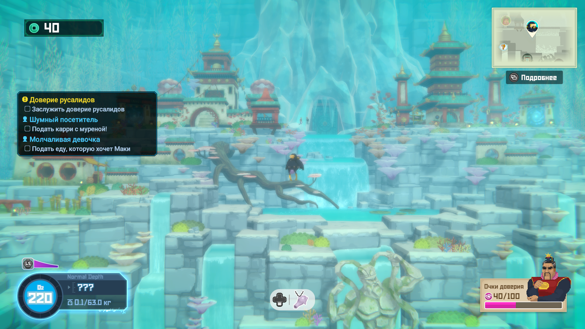 Например, местный будет просить поймать редкие виды рыб, и когда Дэйв будет неподалёку, появится звуковой сигнал. Что мешало сделать так и с белухой? И таких ситуаций вагон и маленькая тележка. Вот простор для действий, и при этом непонятно, что с этим простором делать. Игрока засыпают механиками, которые делают игру интересней и увлекательней, но с другой стороны, они перегружают игру.
