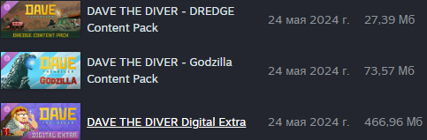 Дополнений три. DAVE THE DIVER Digital Extra приносит в игру такие мелочи, как внешний вид лодки, саундтреки