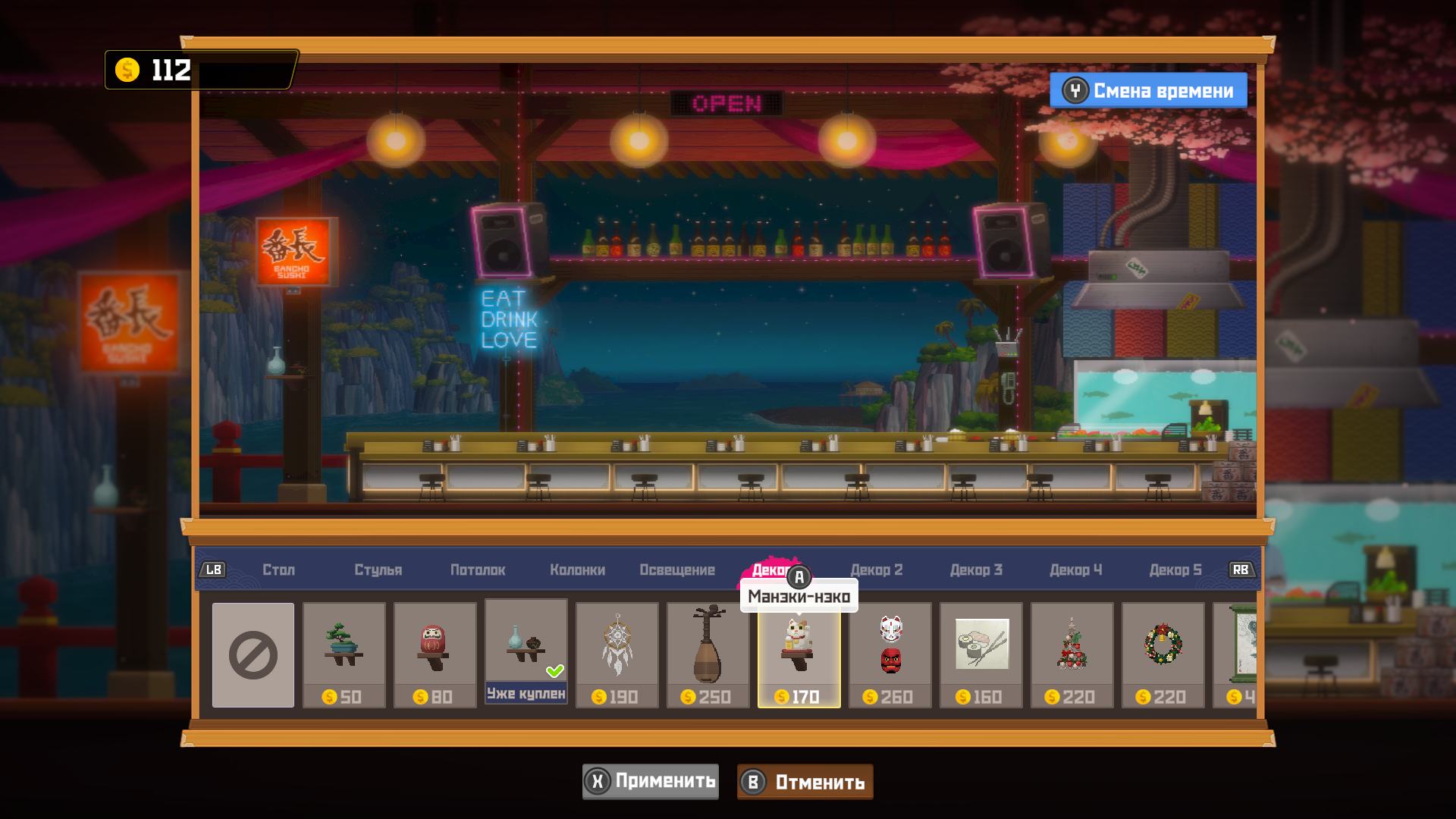 Выращивание овощей, водорослей, рыб, а также прокачка заведения. Чтобы посетитель не скучал, открывайте новые рецепты. Но и тут всё не просто. Чтобы открыть новый рецепт, нужно потратить вдохновение. Зарабатывается оное путём добросовестного обслуживания посетителей. Поначалу это не так сильно душит, но потом игрок сталкивается с тем, что не может пройти дальше, ведь для прохождения нужно набрать уровень известности-одобрения. Этакий аналог звезды Мишлен.