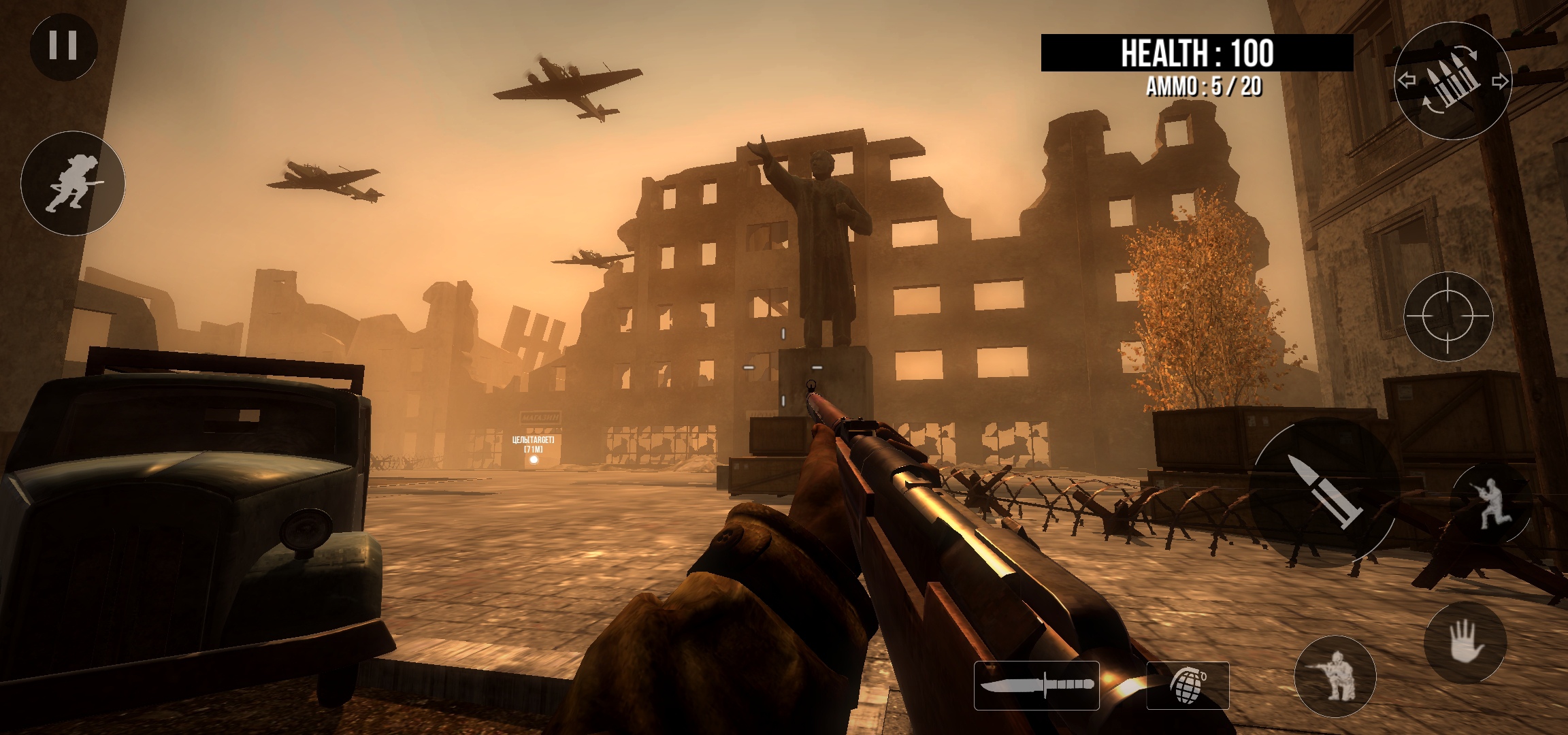 Несмотря на все имеющие у игры проблемы, она меня устроила. Миссий много, они разнообразные, короткие, не успевают приедаться, проходить можно в любой очерёдности. Игра бесплатная, с просмотром рекламы. Графика и арт слабые. Однако очень общими штрихами дизайн всё же даёт эффект, пусть и слабого, но погружения в сеттинг. Старые авто, техника, вооружение, призывные плакаты тех времён, отдельные узнаваемые архитектурные строения и памятники. Отлично смотрятся вставки кинохроники. Замечательно выполнено главное меню в формате живых обоев с аутентичными военными картинами. Неплохо проработан звук, звуковое окружение, нормальный саундтрек. Есть технические проблемы. За три прохождения был один вылет, погружение в текстуру. Напрягали невидимые стены, особенно те, что приводили к гибели (границы зоны).