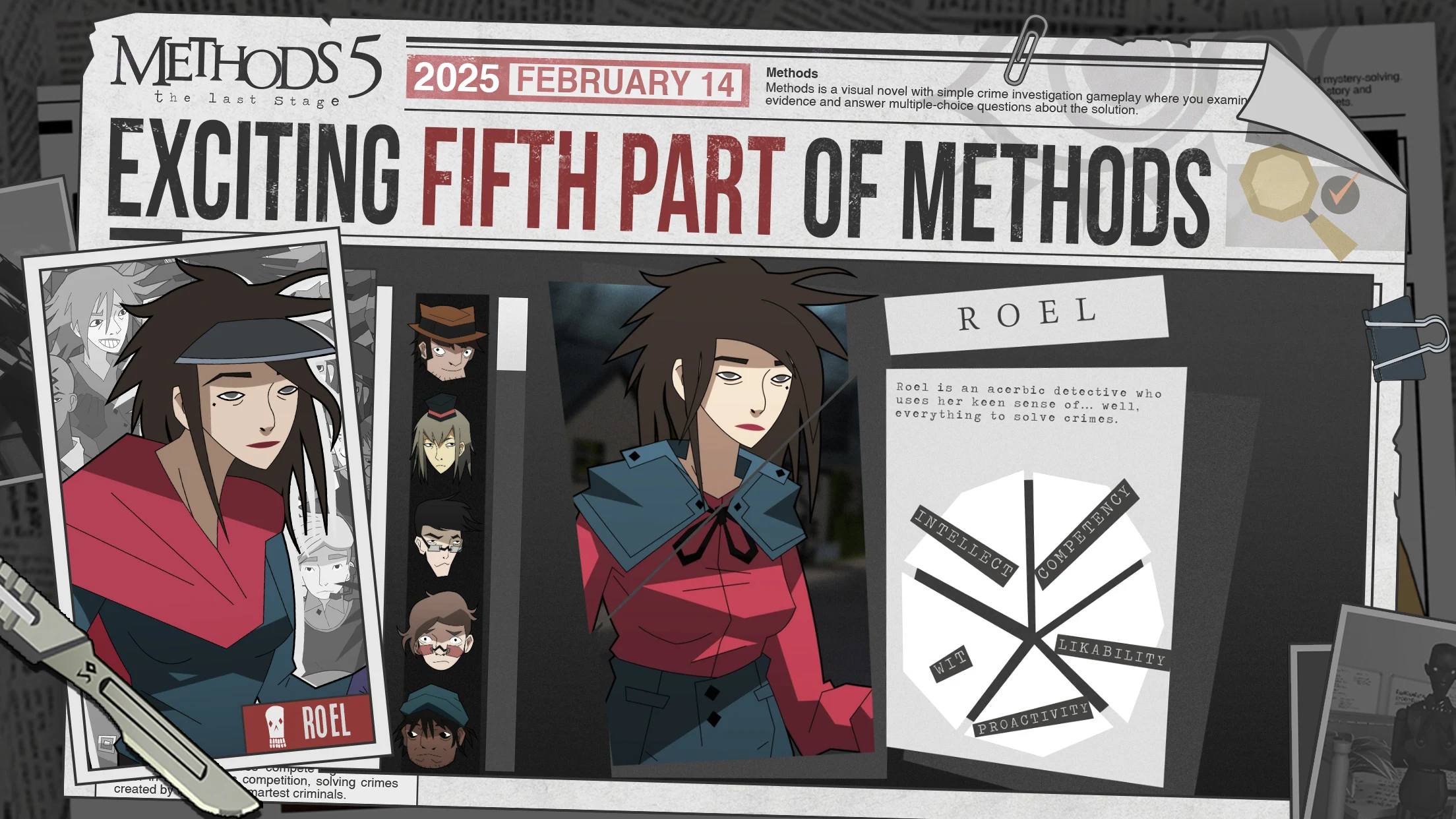Как и предыдущие части серии, Methods 5 предложит игрокам характерный визуальный стиль, оригинальный саундтрек и более 25 интерактивных мест преступления для исследования. Дополнительным бонусом для фанатов станет DLC под названием Methods: The Illusion Murders. Это отдельная история, посвященная детективу Ред Джулай и ее расследованию загадочного дела о трех жертвах, выстроенных треугольником и убитых одной пулей. Интересно, что идея этого дополнения родилась из случайного обсуждения истории данного персонажа с фанатами в Twitter еще в 2020 году.