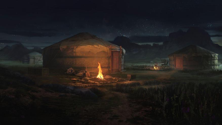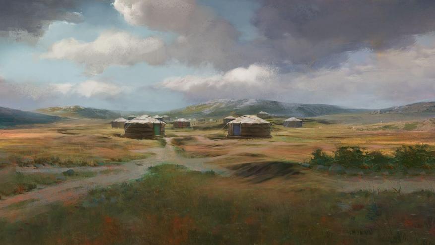 По словам разработчиков, эта композиция не только выглядит эффектно, но и символизирует связь кочевников с природой. Дополнительно была проработана цветовая гамма: сочетание золотистой дымки и тёмных туч создаёт контраст, подчёркивающий изменчивость степного климата и цикличность времён года в игре.