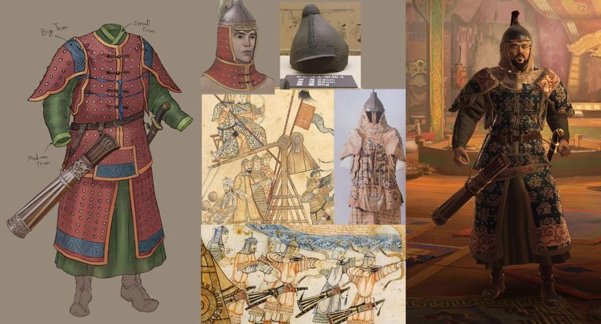 Хотя в базовой версии игры уже присутствовали некоторые элементы монгольской одежды мирных граждан, их ассортимент был ограничен. Предстоящее дополнение о кочевниках позволит значительно расширить гардероб персонажей. Для достижения исторической достоверности команда провела масштабную работу: