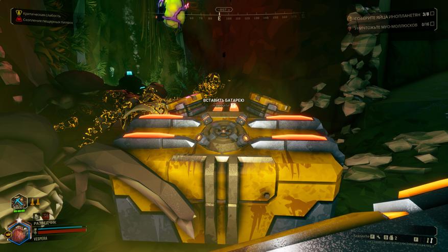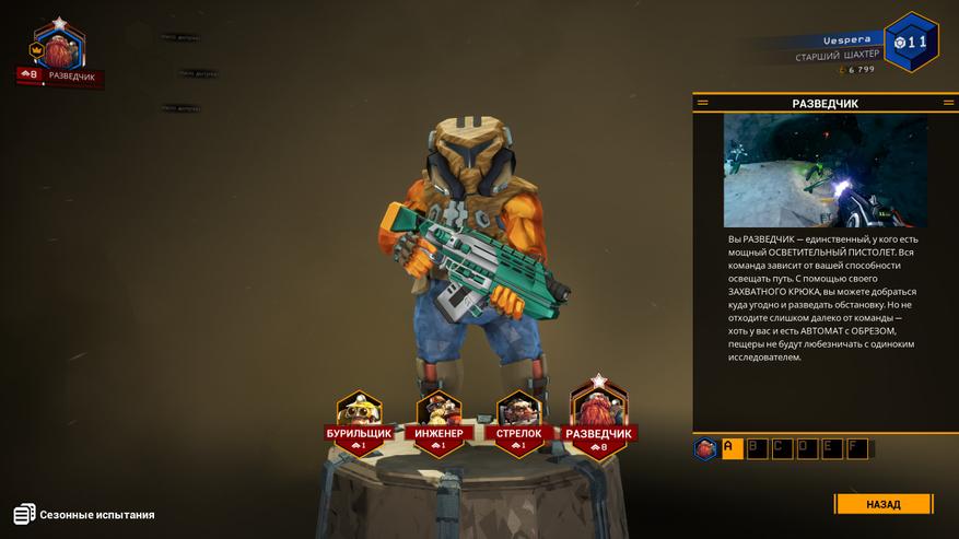 Бурильщик роет туннели, инженер ставит турели, стрелок, словно живая турель, использует миниган, а разведчик летает по пещерам с крюком и освещает команде путь. Все классы доступны сразу, и вы можете менять их в любой момент на орбитальной станции — местном хабе.