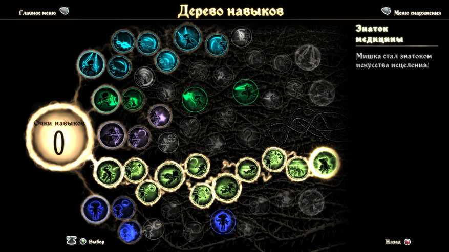 По мере прохождения плюшевый будет открывать новые костюмы и улучшения. Костюмы сугубо косметические, но, как говорится, почему бы и нет. А вот прокачка может значительно упростить прохождение. Но стоит читать описание внимательно, ведь очки прокачки дадутся отнюдь нелёгким образом. Мною был сделан упор на лечение и урон.