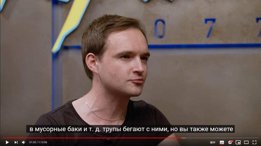 Я смотрел интервью с автоматическим переводом на русский и в определённый момент он выдал текст, как на рисунке ниже, который может быть предсказанием некоторых багов, встречающихся в игре.