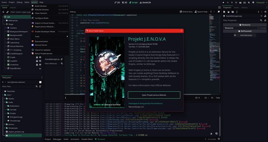 Jenova-Runtime это расширение для Godot, которое добавляет полноценную поддержку C++ как языка скриптов прямо в редактор, а не под капот. С его помощью можно писать игровую логику на C++ с поддержкой стандартов C++20/23, практически как если бы вы использовали GDScript или C#, но при этом получая высокую производительность и доступ ко всему богатству C++.
