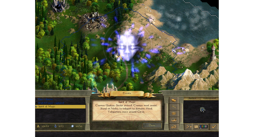 В геймплейном плане The Wizard's Throne схож с первой частью, но делает упор на магию. Каждая раса резко учится строить башни мага. Они увеличивают дальность колдовства находящегося там мага, и открывает самых сильных существ. Большое количество подконтрольных городов с башнями позволяет колдовать хоть через всю карту. Мне один человек посоветовал строить связку телепортов со жнецами. Телепорт — это одна из финальных построек города. Если у вас есть несколько городов с телепортами, то это уже автоматически можно считать победой.