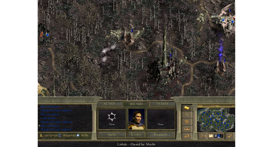 Мерлин сначала нападает, а потом уже думает. Его способ переговоров сводится к открытым военным действиям с другими волшебниками. Зачастую его противников либо подставляют, либо они вообще пытаются отстраниться от конфликта. Так он решил призвать Арахну на свою сторону. Как он это сделал? Убивая её людей и захватывая города! И его бывший враг что-то не торопился становиться другом. А когда Мерлин стал постигать сферу смерти, то перешел в еще одну крайность, и стал истреблять все живое.