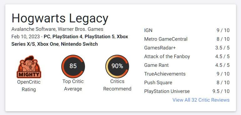 Появились первые оценки Hogwarts Legacy: критики в восторге