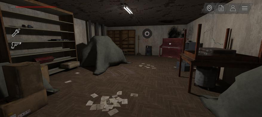 У игры устаревшая картинка и слабый артдизайн. Если в прологе глаз цепляли хотя бы чарующие своей мрачностью картины на стенах, то на основной локации антураж максимально пресный. Неплохо в игре смотрятся тени, но интересного применения им нет. Понятно, что разработчик на данном этапе уже не сможет ощутимо улучшить графику, насытить окружение множеством сложных текстур и объектов. Но подход к арту нужно менять. Достаточно одной приметной детали на комнату, которая будет отвлекать от дешевизны окружения и хоть чем-то удивлять геймера. То, что мы не понимаем — пугает. А однотипный дешёвый антураж — лишь навевает скуку. Брать пример можно с пиксельного Yuppie Psycho или Bendy and the Ink Machine, где арт перекрывает всю простоту картинки.