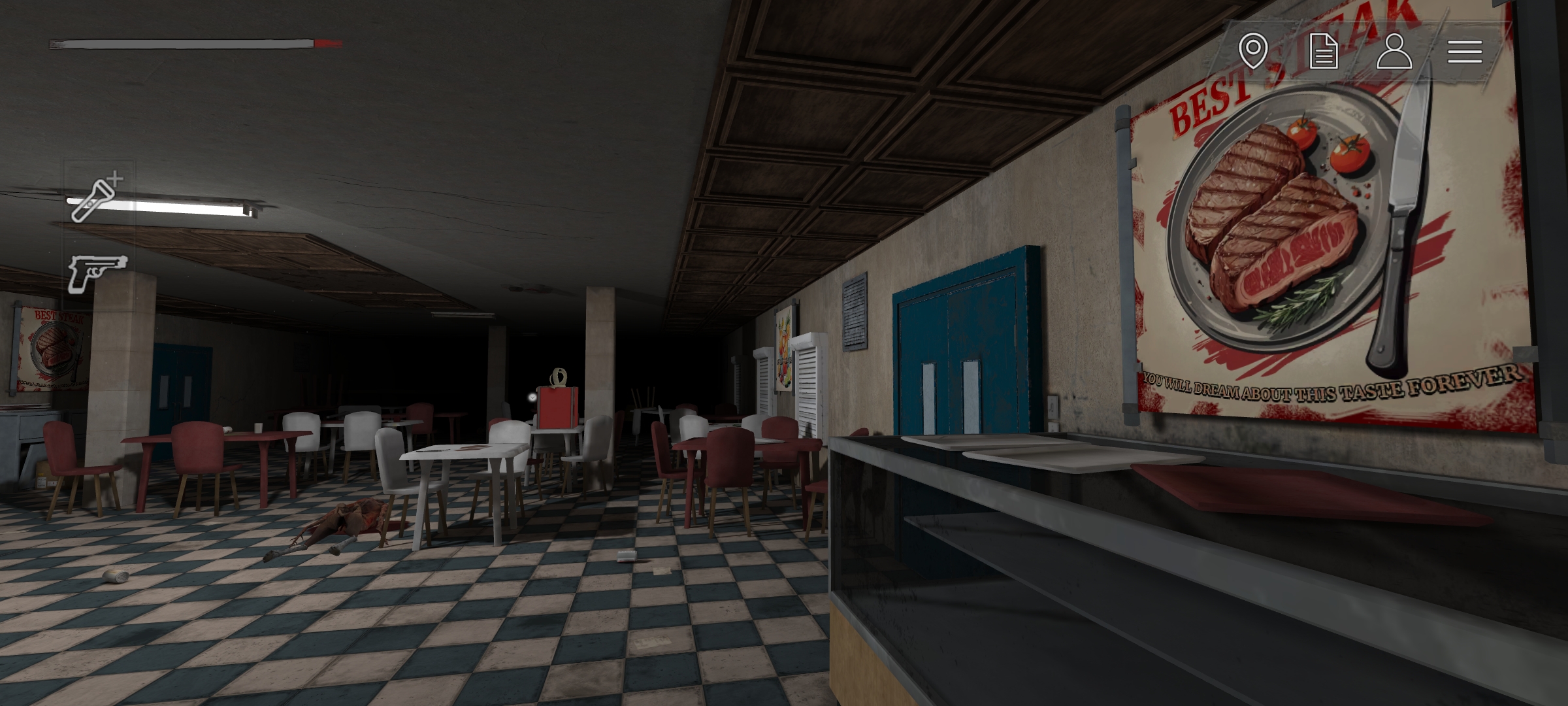 Геймдизайн в демо очень простой, но рабочий. У нас есть большое количество комнат, по которым раскиданы враги, лечилки, отмычки для открытия замкнутых шкафчиков, замкнутые шкафчики для поглощения отмычек, сумки для увеличения инвентаря, ящики для хранения лишних предметов, патроны для пистолета, квестовые объекты и другие радости. Каждая комната за внимательное изучение награждает нас этими радостями, потому игровой процесс в части изучения окружения и поиска предметов работает нормально. Активные объекты на локации при приближении к ним выделяются заметно, но не навязчиво, пиксель-хантингом заниматься не приходится. Большое количество дверей поначалу для нас закрыты, как и доступ к некоторым квестовым объектам. То есть бэктрекинг вшит в геймплей. Но так как помещения все находятся рядом — он не напрягает.