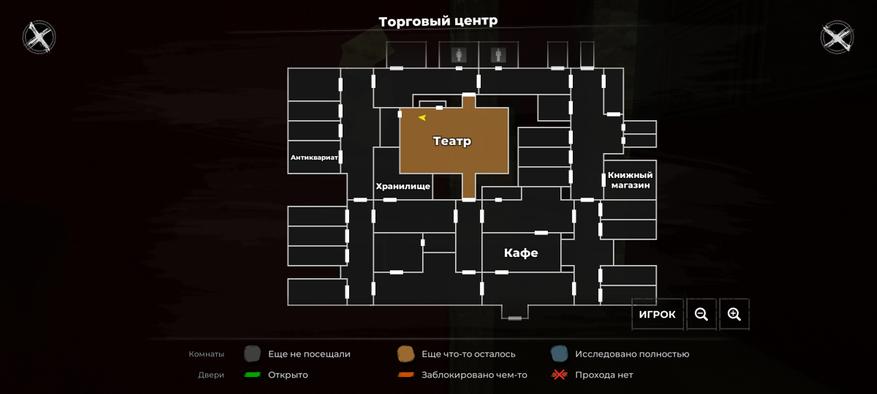 Карта демо проста и информативна. Зелёным цветом на ней отмечены двери, которые уже открыты, оранжевым — которые заблокированы чем-то (их можно открыть с другой стороны, отперев засов, либо с помощью ключа или иного предмета), а красным — двери, где прохода нет. Комнаты, которые мы не посещали — чёрным, исследованные полностью, внутри которых предметов не осталось — серым, а места, где остались не взятые нами предметы — оранжевым. Если в комнате нами обнаружен и не использован квестовый стационарный объект, данный объект отображается знаком вопроса. Чтобы не ломать себе глаза на маленьком экране, изображение карты можно приближать и удалять по желанию. Карта вызывается нажатием одной кнопки, выделенной специально под неё. Благодаря таким элементарным решениям исследование в демо удобно и дарит удовольствие.
